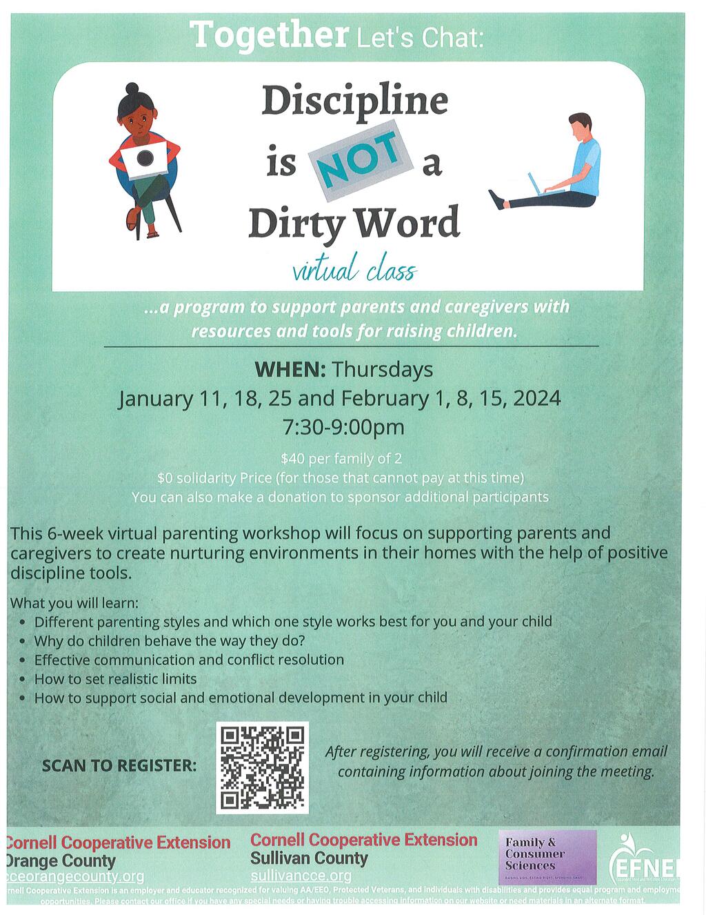 PJCSD parents: Cornell Cooperative extension of Orange and Sullivan Counties is pleased to present the following virtual workshops for parents. Please see the flyers for more information.