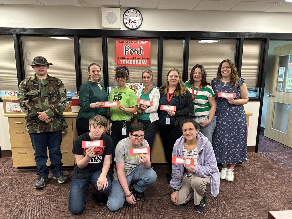 Noel Conklin, Ms. Antalek, and Mrs. Bushey received recognition for perseverance, and Daniel Benson, Mrs. Hyziak, and Mrs. Mark were recognized for mindfulness.