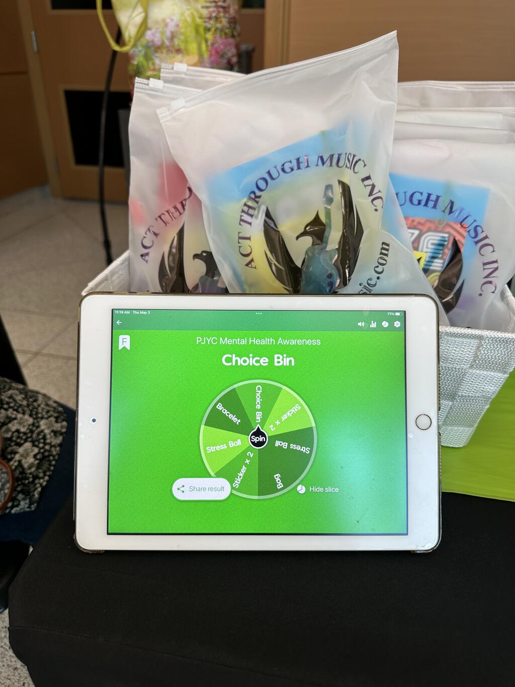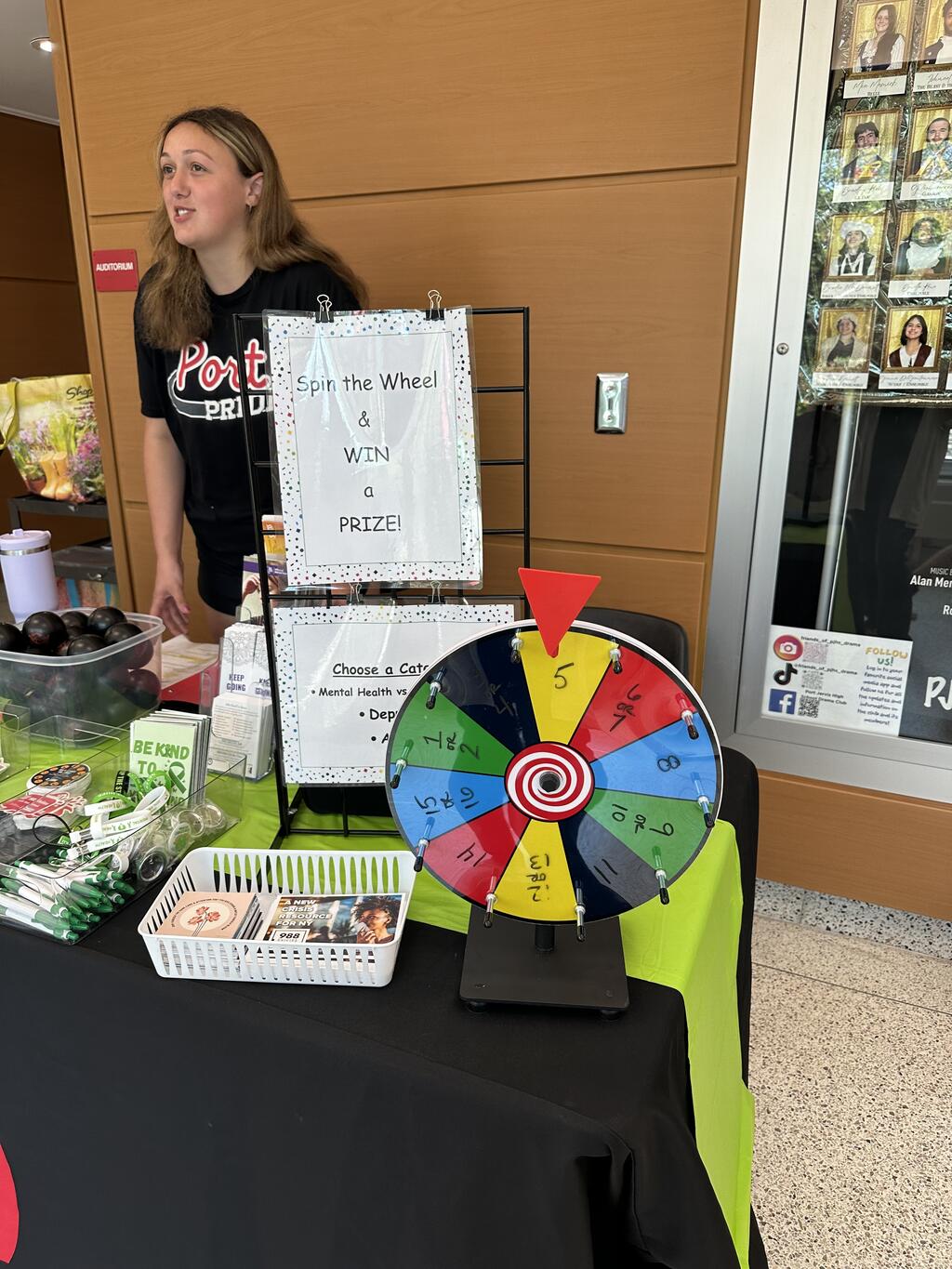 The PJYC recognized Mental Health Awareness Month with another spin-the-wheel prize game. Members shared facts about mental wellness, depression, and anxiety and talked about coping strategies with their peers during the lunch periods on Thursday, 5/2.