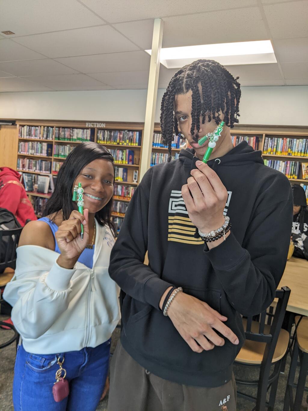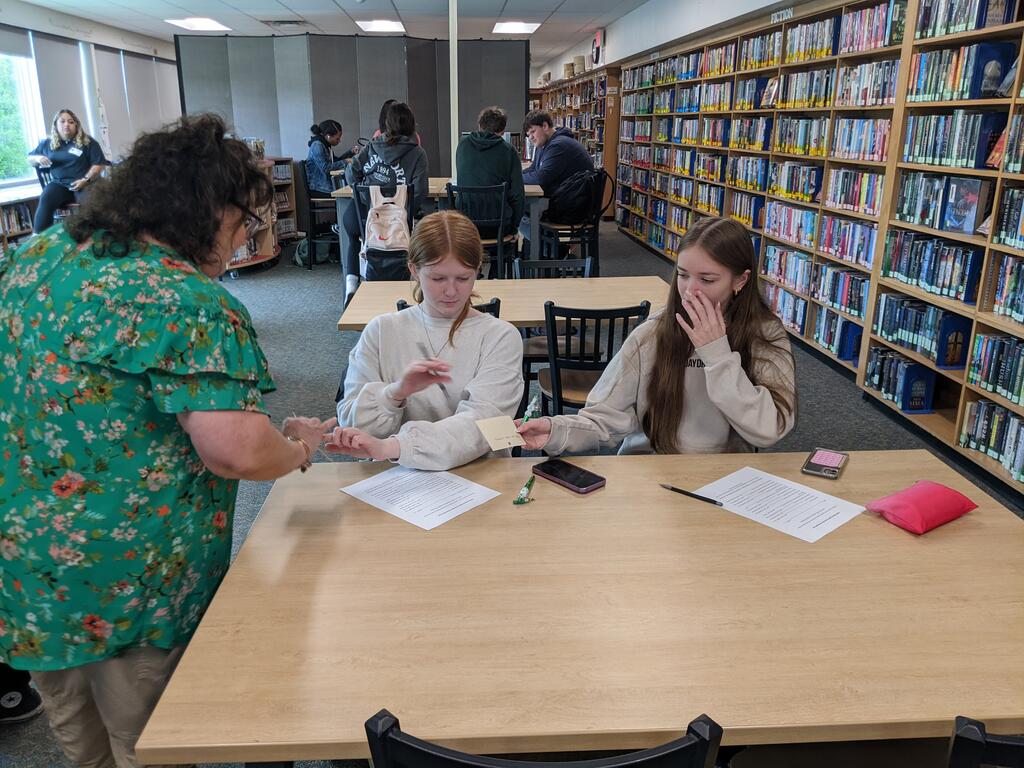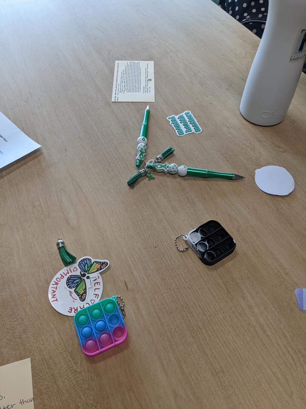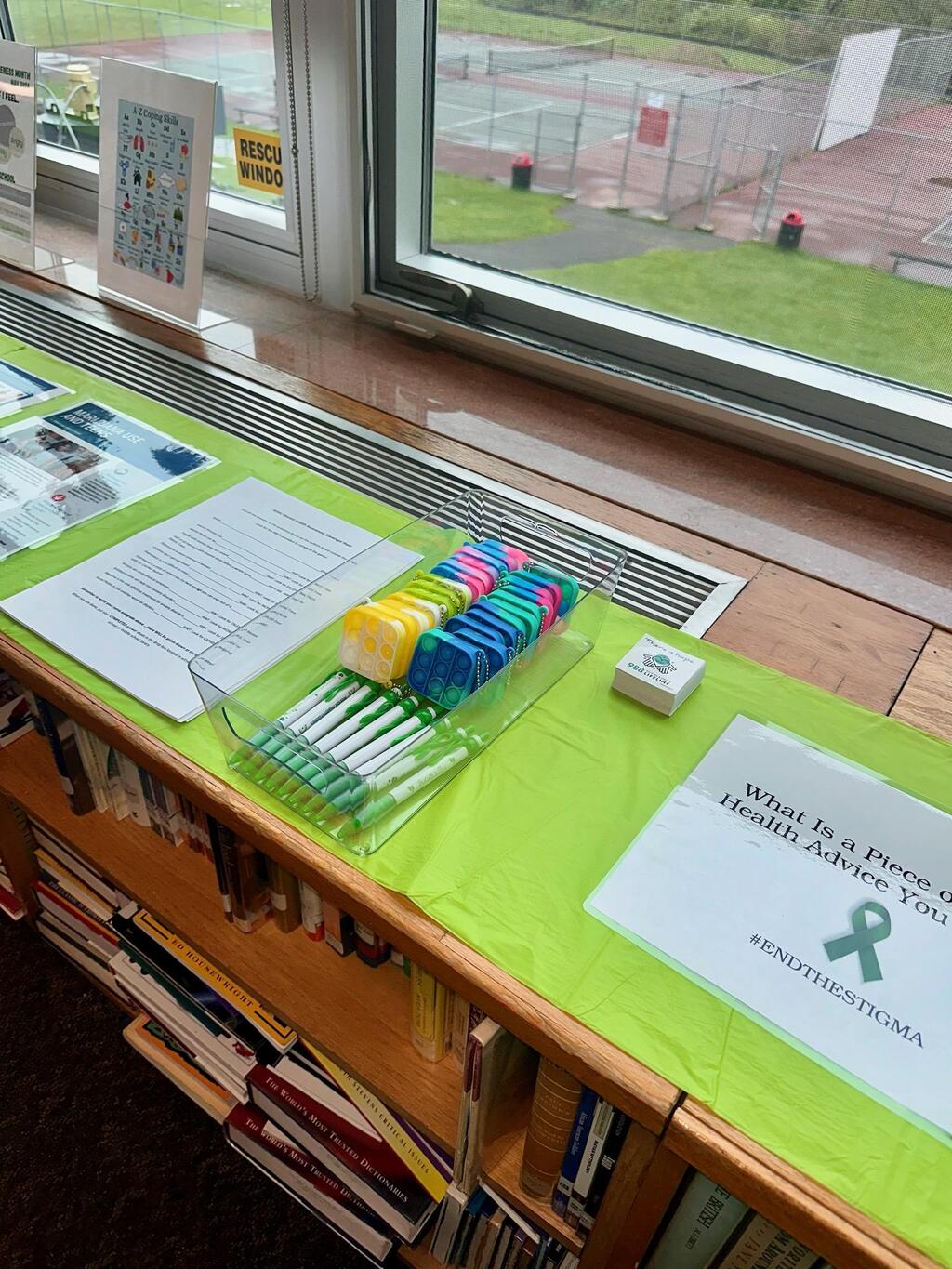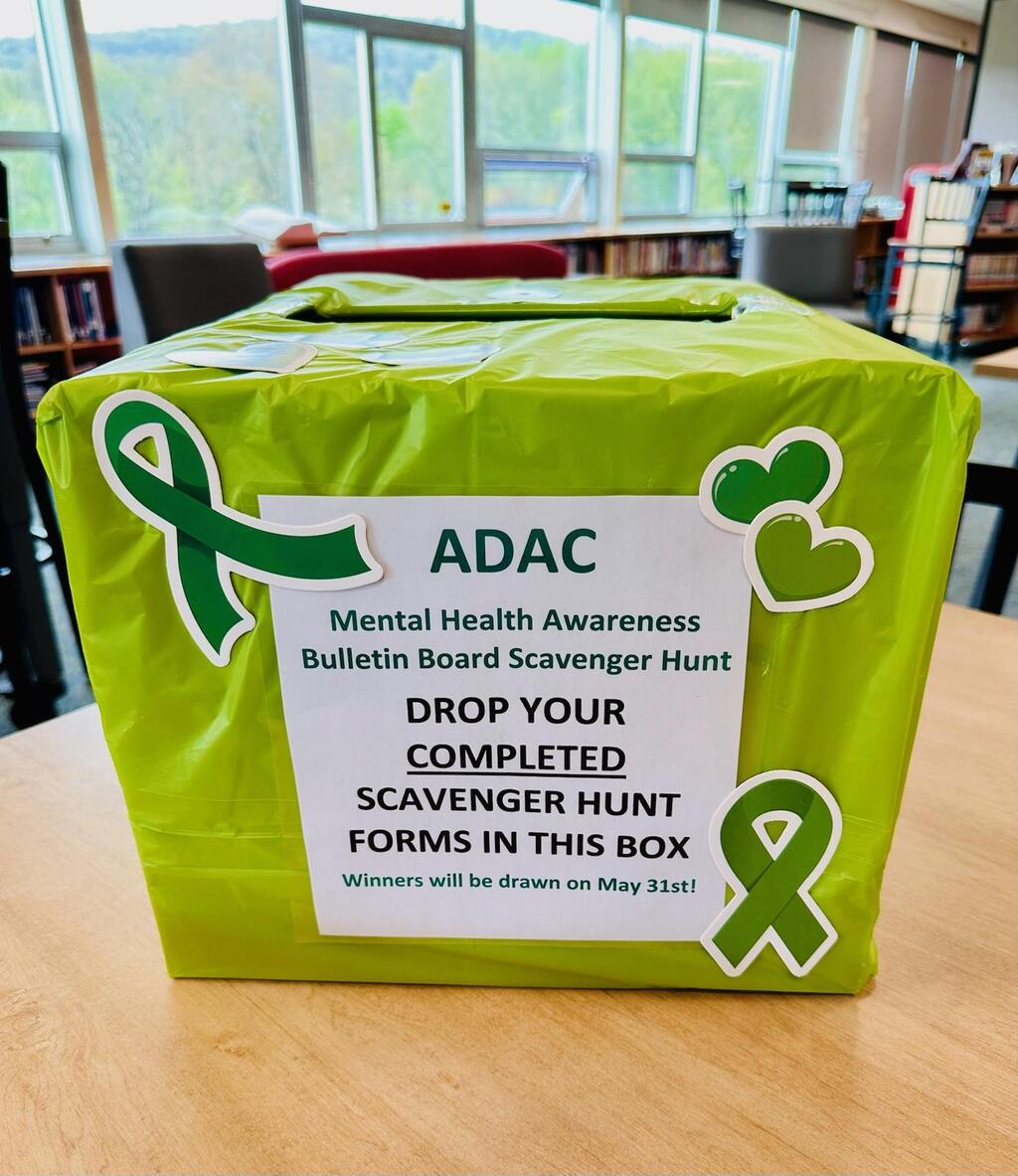 ADAC's Prevention Specialist Denise Hulse and Mental Health Specialist Mylene Ortiz spent the day in the high school library on Monday to kick off Mental Health Awareness Month. All students were welcome and had the opportunity to make their own beaded pens, participate in a mental health scavenger hunt, and ask questions. This was an important event to raise awareness and diminish the stigma of mental health. In addition to this event, there is a mental health scavenger hunt happening for the entire month of May. Students should look for the bulletin board outside of the library to play for some fabulous prizes. Winners will be announced on 5/31.