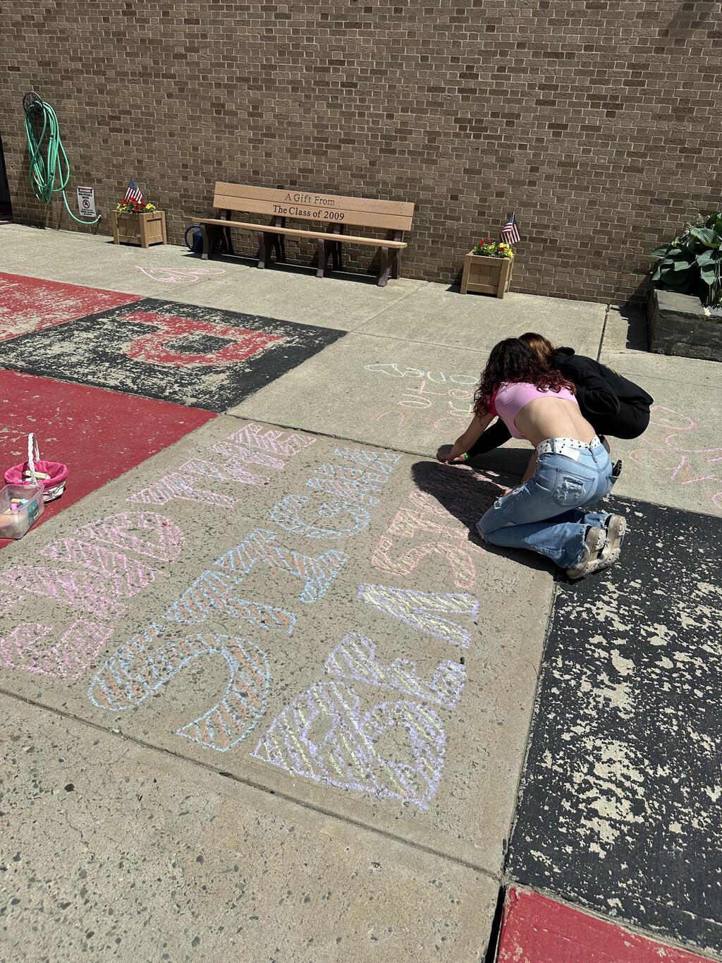 On Monday, May 20th, students joined the Port Jervis Youth Coalition (PJYC) during lunch periods as they Chalked The Walk with positive, uplifting, and inspirational messages in front of the school in recognition of Mental Health Awareness Month.