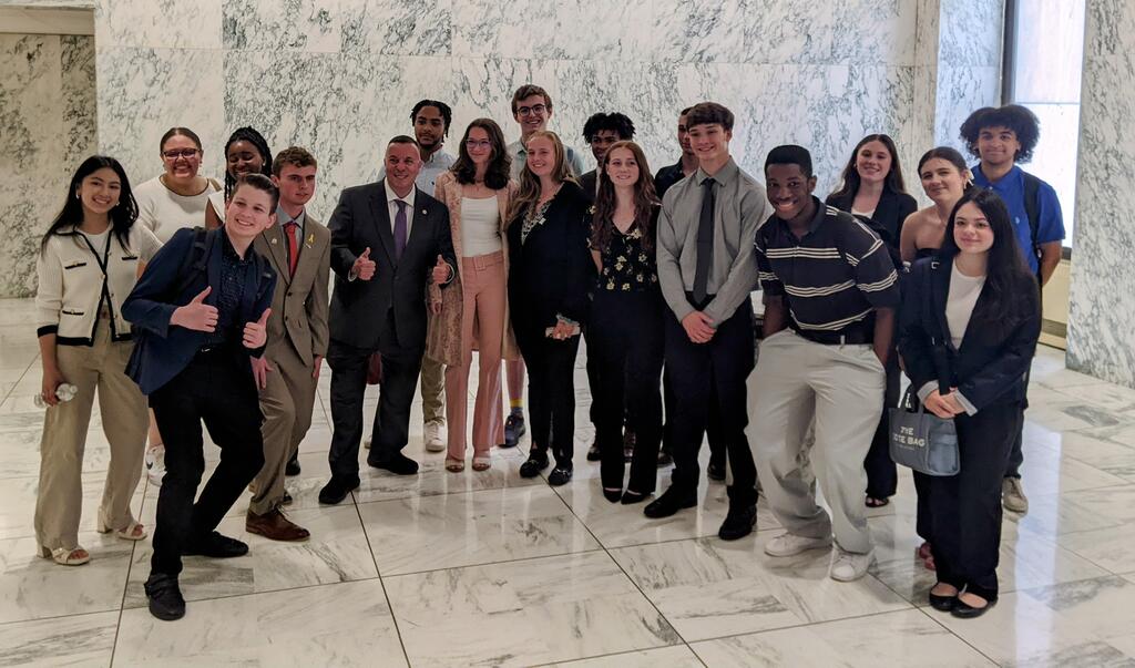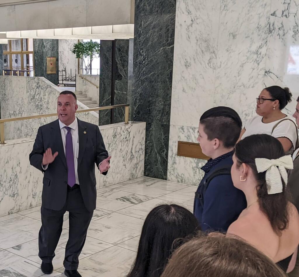 Port Jervis High School's Youth in Government Club finished the year with a trip to Albany to meet with Senator Skoufis and his staff and Assemblyman Karl Brabenec. Senior Noemie Florant, YIG Governor Elect, and Senior Elleanna Sotelo joined students from the other YIG participating districts on the trip, sponsored by OUBOCES. The ladies were accompanied by advisors Christine Piscitelli and Lisa Perkowski.