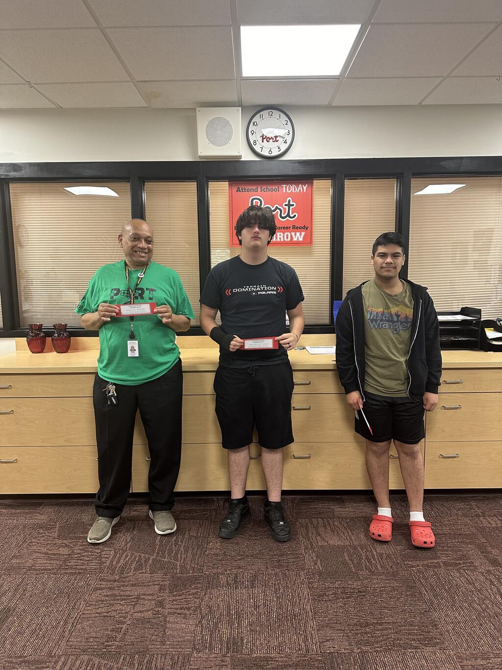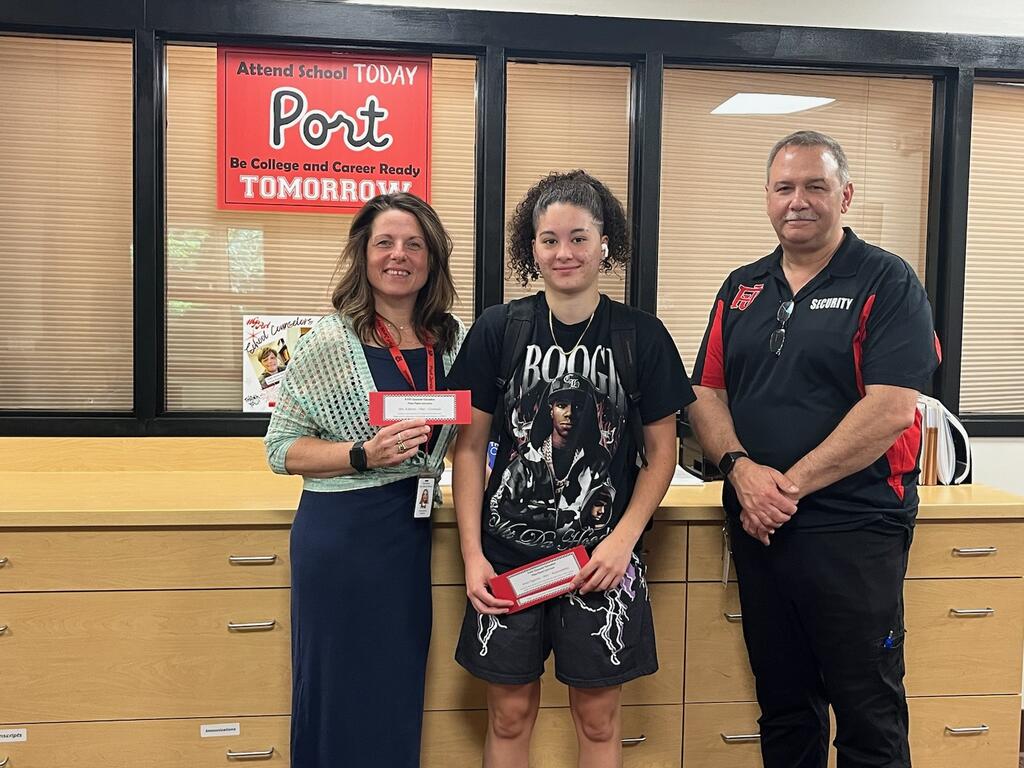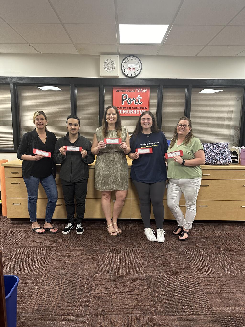Ms. Weed and Hunter Colville were recognized for perseverance. Mrs. Sorensen, Antonio Berdecia, Nurse Weinick, Mr. Barila, and Mrs. Costello were recognized for respect.