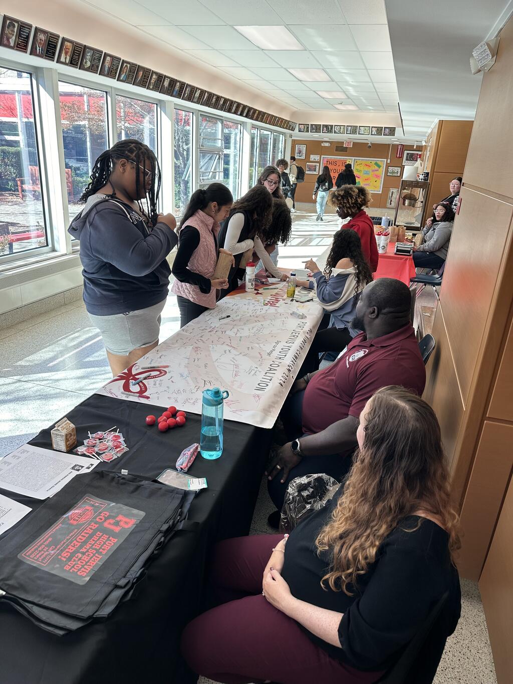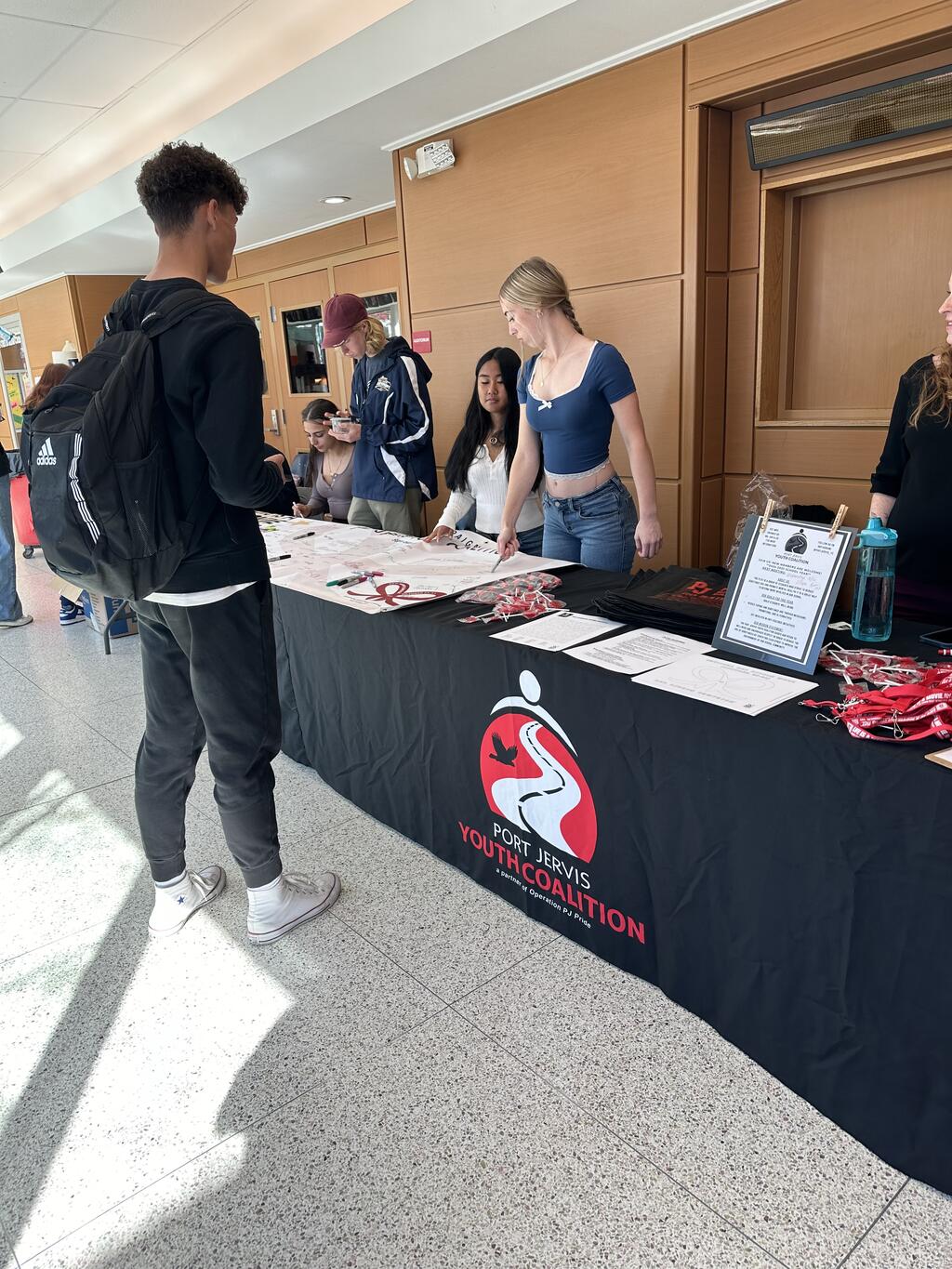Red Ribbon Week is the longest running youth-focused substance use prevention initiative in our nation. This year’s theme, Life Is A Movie, Film Drug Free is a call to action to speak out in support of healthy choices. The Port Jervis Youth Coalition (PJYC) recognized Red Ribbon Week at the high school by sharing information with peers about healthy living. Students were encouraged to sign a pledge to remain drug and alcohol-free.