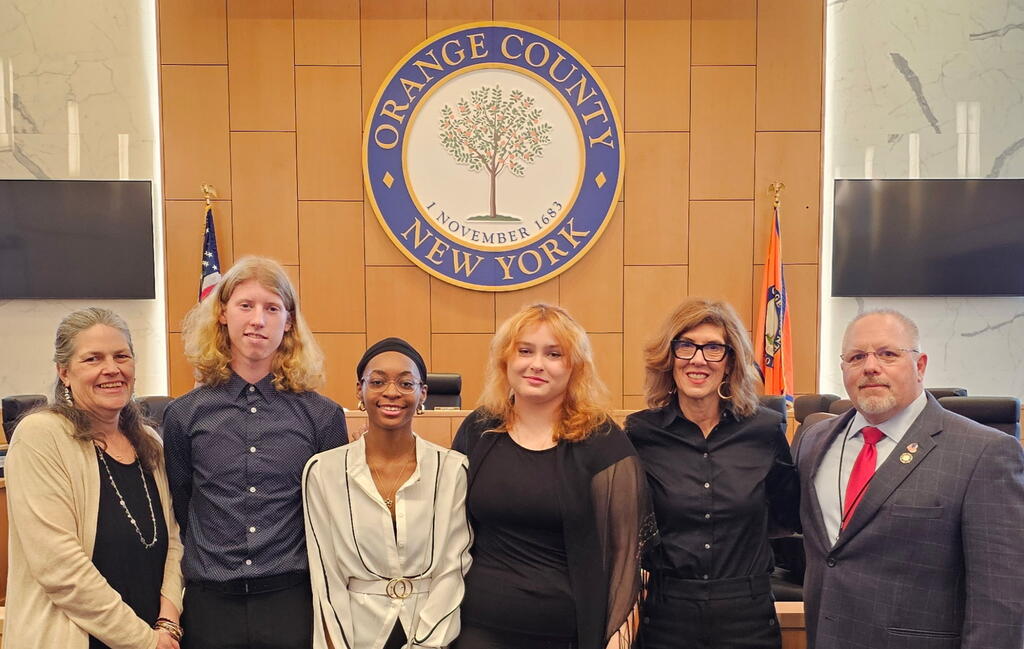 On Friday, April 3rd, members of the HS Youth in Government Club, along with advisors Christine Piscitelli and Lisa Perkowski, participated in the Orange County Government's Day of Service. Seniors Bryce Shannon and Tahera White, along with Junior Jayden Melott, spent the day shadowing members of the Supreme Court and Orange County Probation Department. They started their day in the Orange County Legislative chamber with our County Legislator, Tom Faggionne, and ended their day at a luncheon at the Wallkill Country Club. 13 school districts participate in Youth In Government, which is sponsored by OUBOCES. County Service Day is sponsored by the Orange County Youth Bureau working in conjunction with OUBOCES.