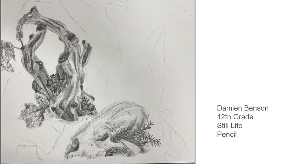 These are live still-life pieces sketched by hand in class. They used their observational skills to complete a contour drawing first and then went back in to fill in the textures and shading.