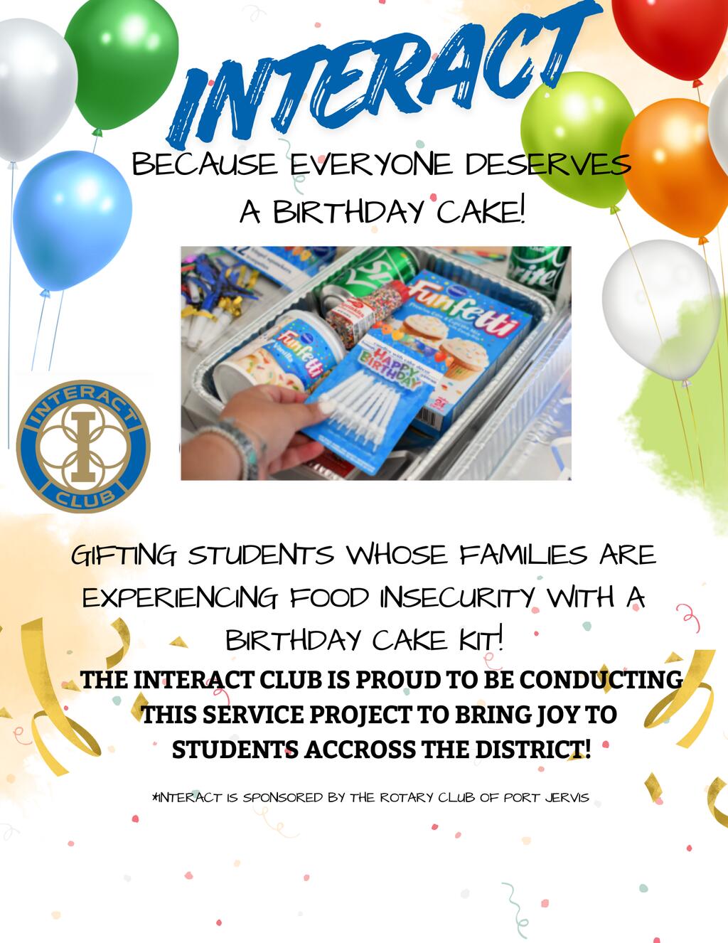 The PJHS Interact Club, the youth branch of the Port Jervis Rotary Club, is proud to be performing a service project to bring happiness to students in the district who are living in food-insecure households. Club members spent a recent meeting inventorying supplies and putting together birthday cake kits so they are ready to be delivered to students right before their birthdays.