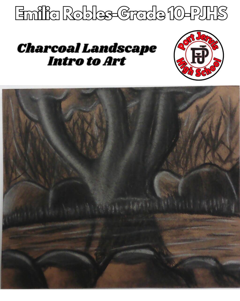 Senior Benson Cilius, a pinch pot ceramic piece made with the sgraffito glaze technique & sophomore Emilia Robles, a charcoal landscape. Thank you, Benson & Emilia, for sharing your work & to Mrs. Horst, for her many years in the PJHS art department. #GoPORT
