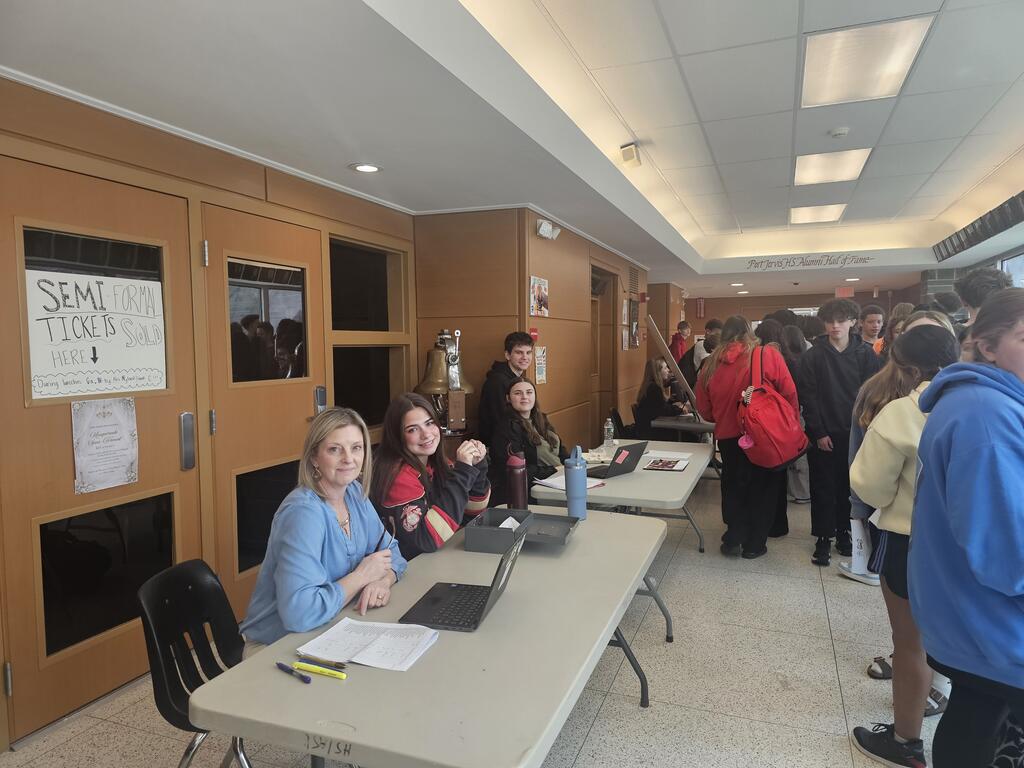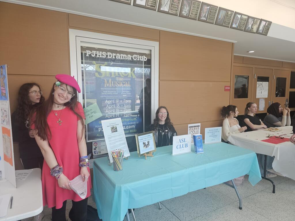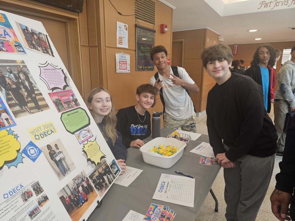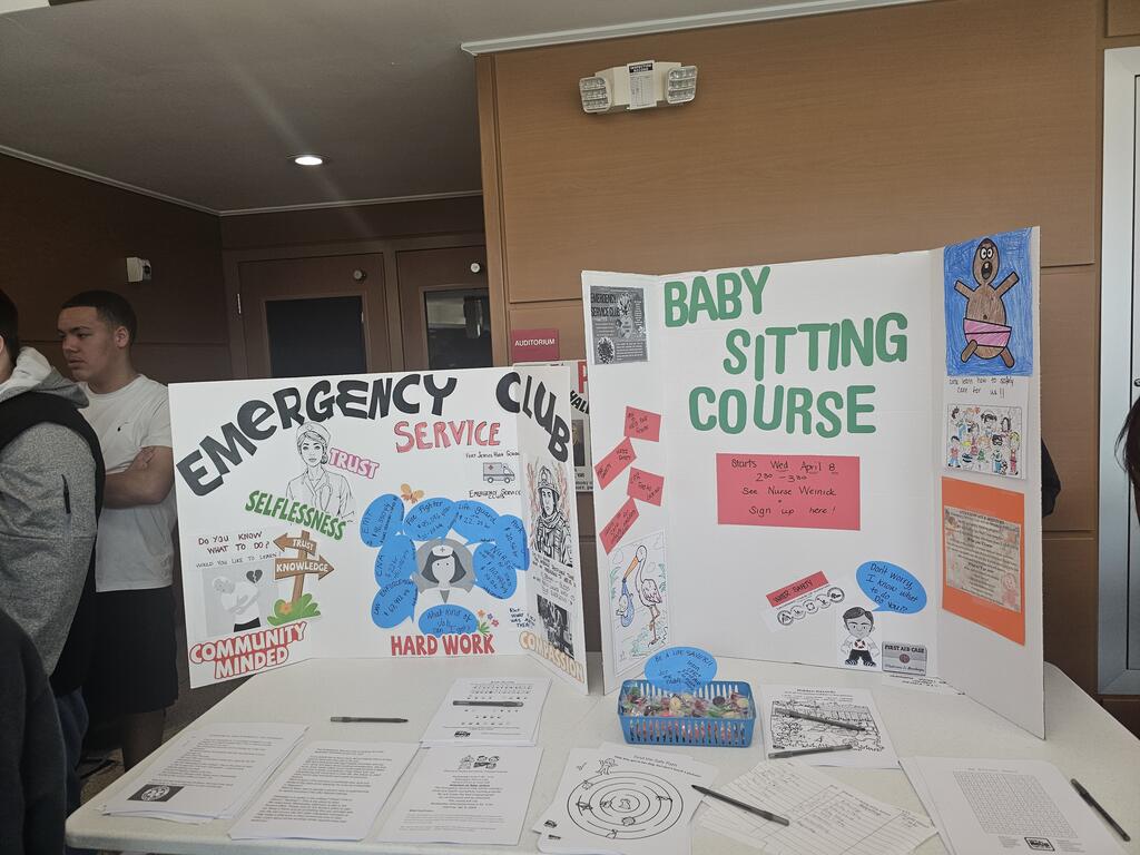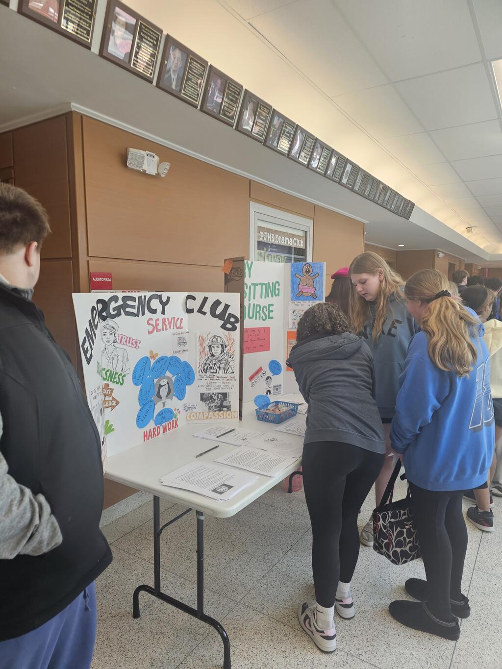 The High School held a Club and Activities tabling event during lunch periods to encourage students to participate in extracurricular activities and show them what's available at the high school if they'd like to get more involved in their school activities. Student members of current clubs manned the table to recruit their peers and answer questions about their clubs.