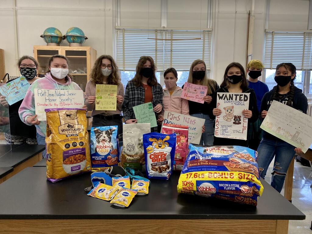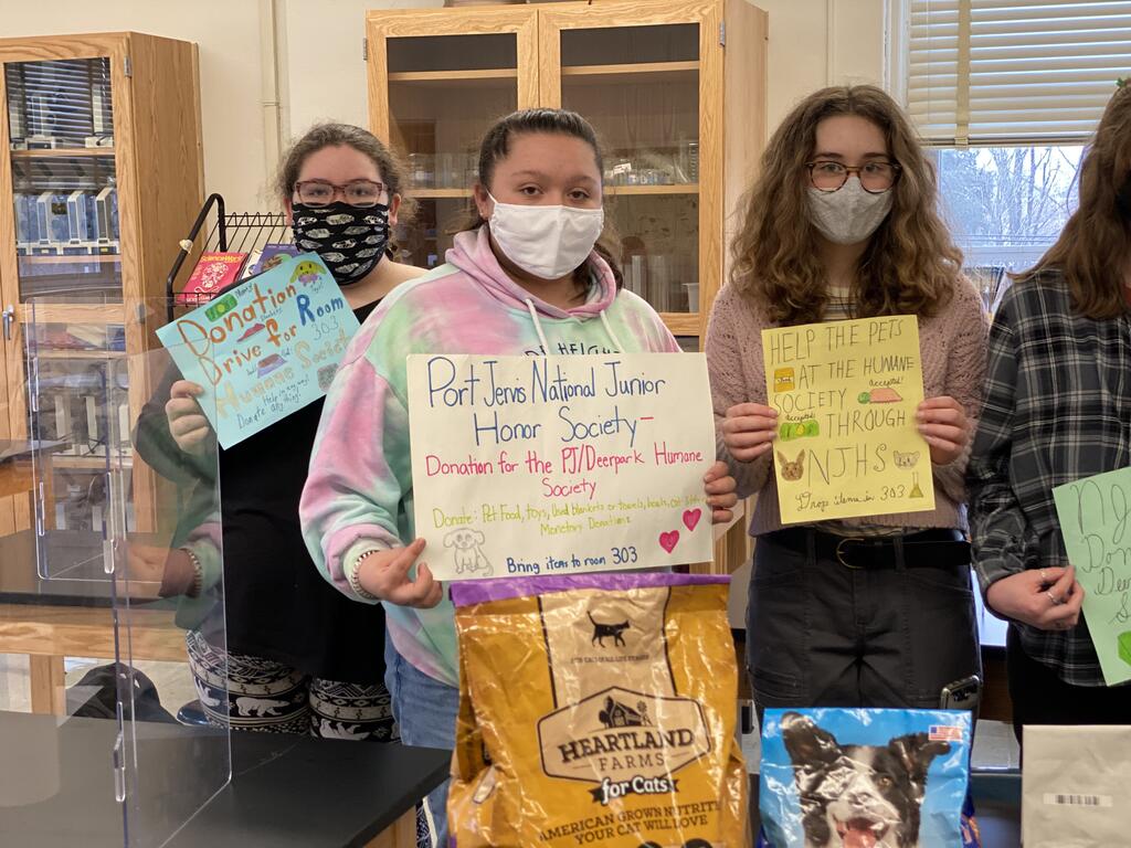 Port Jervis National Junior Honor Society collected donations for the Port Jervis/ Deerpark Humane Society including pet food, towels, bowls, cat litter, and monetary donations.