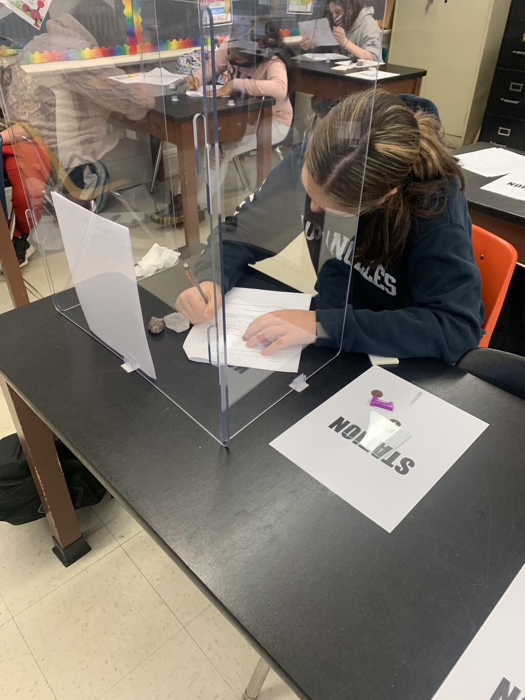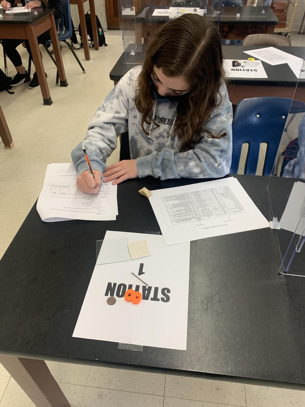 Future scientists in Ms. Heidelberg's second period Middle School classroom conduct a mineral identification lab! During this lab, they identified the physical properties of minerals to try and figure out what mineral they were examining!