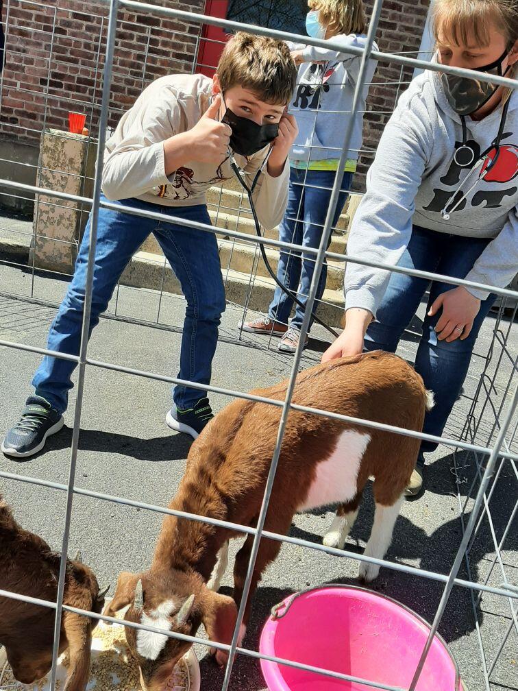 Middle School students in Mrs. Wieboldt's STEM (Science Technology Engineering Mathematics) class get a first hand look at animal care and proper handling.