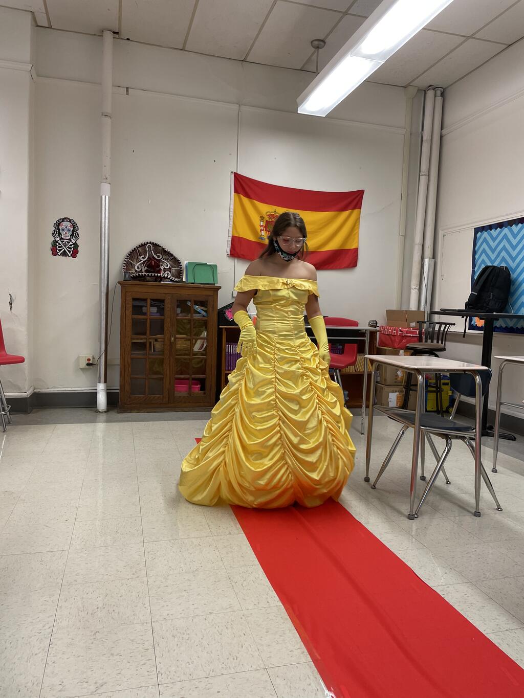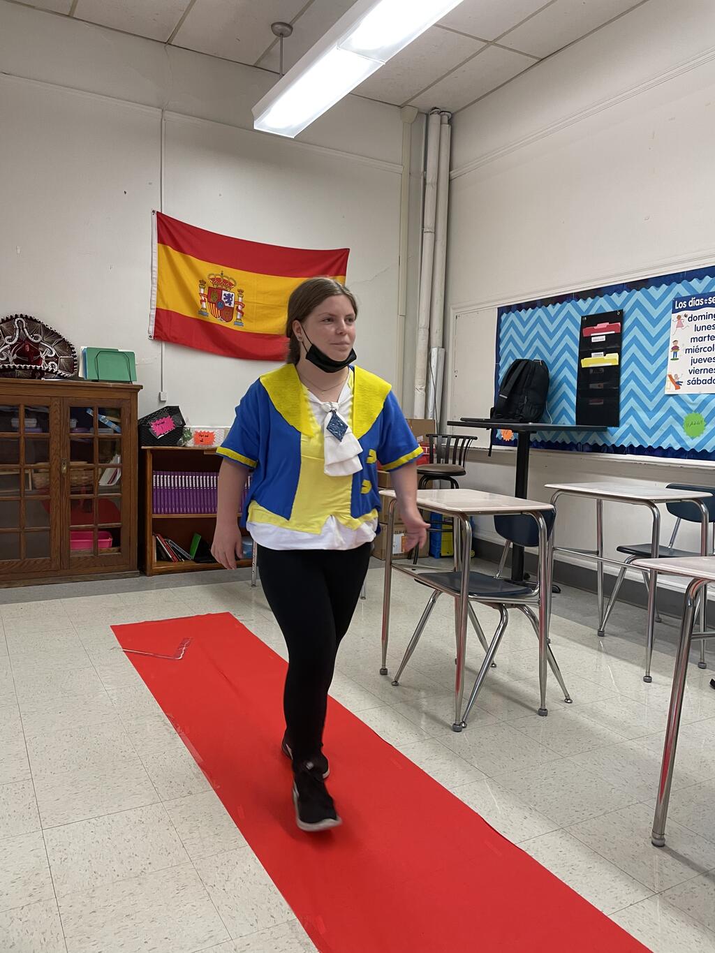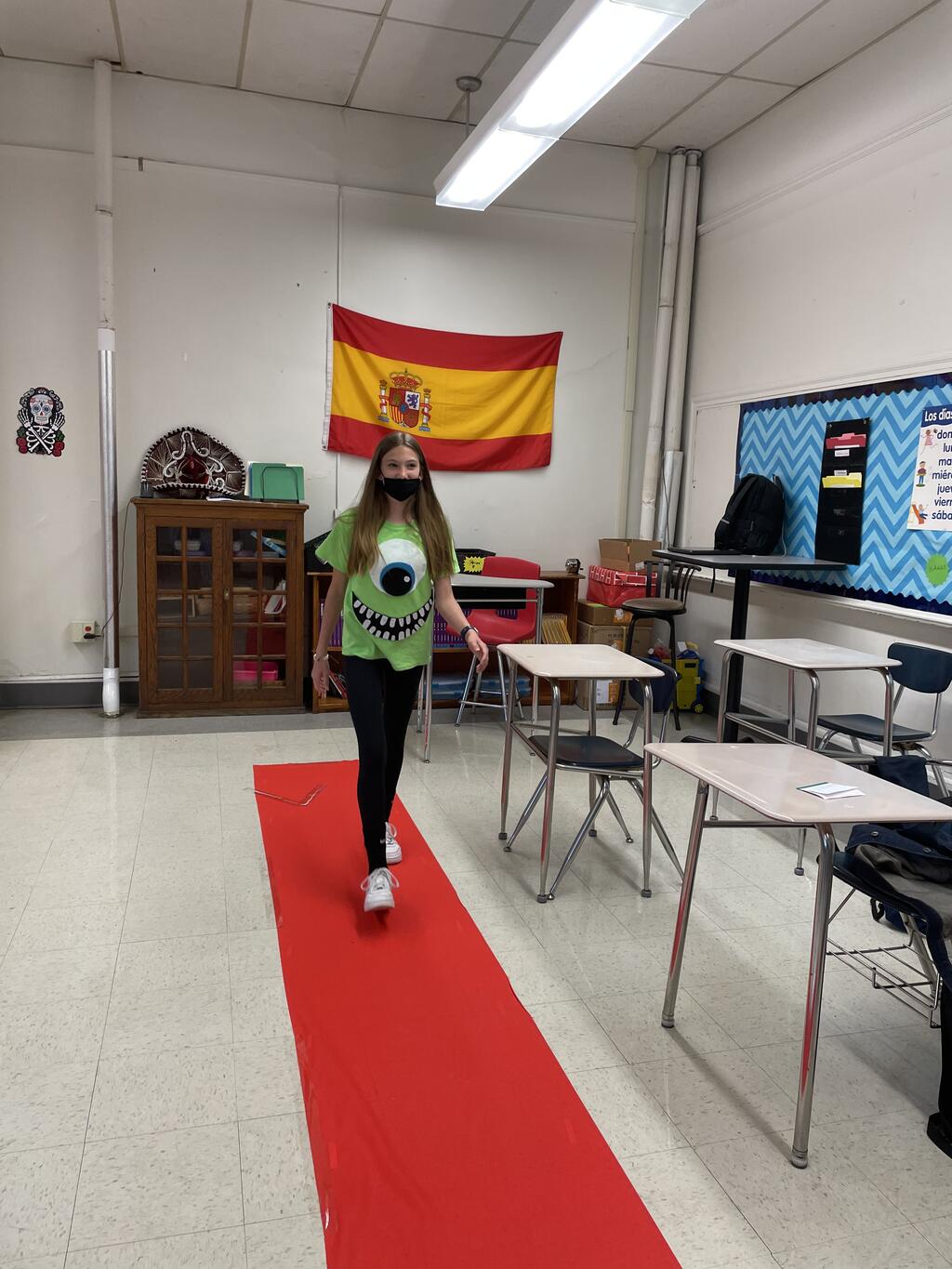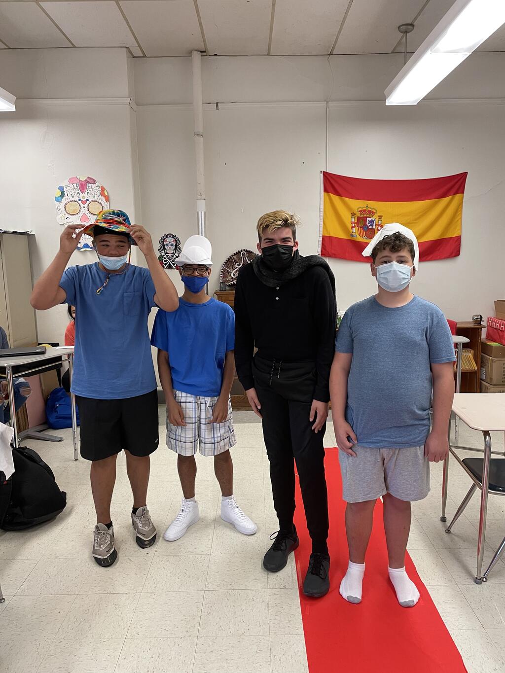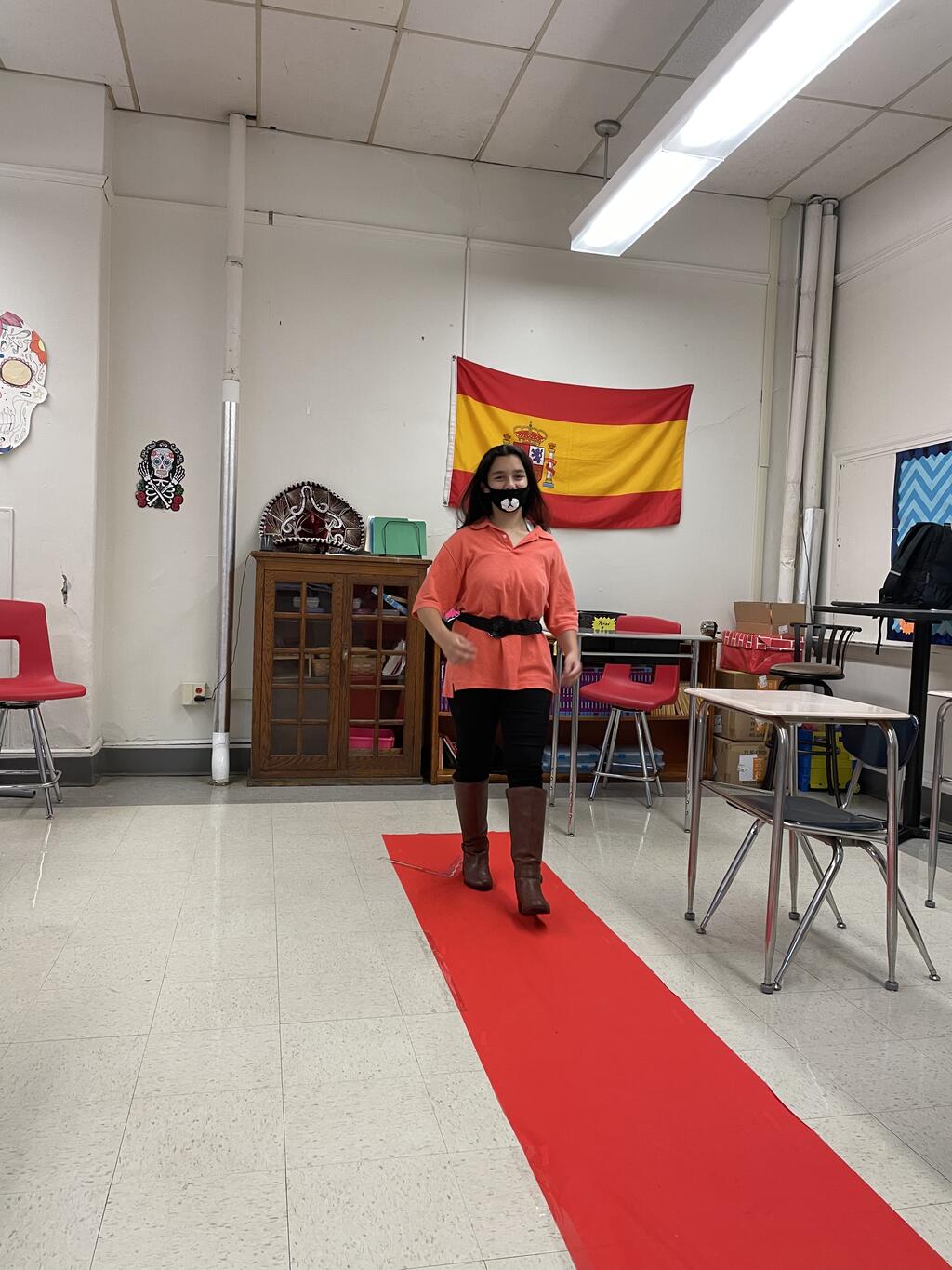 This year's foreign language fashion show sported all of the flair, color and style as all others only wrapped up in a slightly different package. Each class paraded their garments in their own classrooms with high aspirations of offering a video recording of the fanfare or a virtual fashion show experience. Class shown here are Sr. Medina"s Spanish classes. Stay tuned for Madam Abarbanel's French classes!