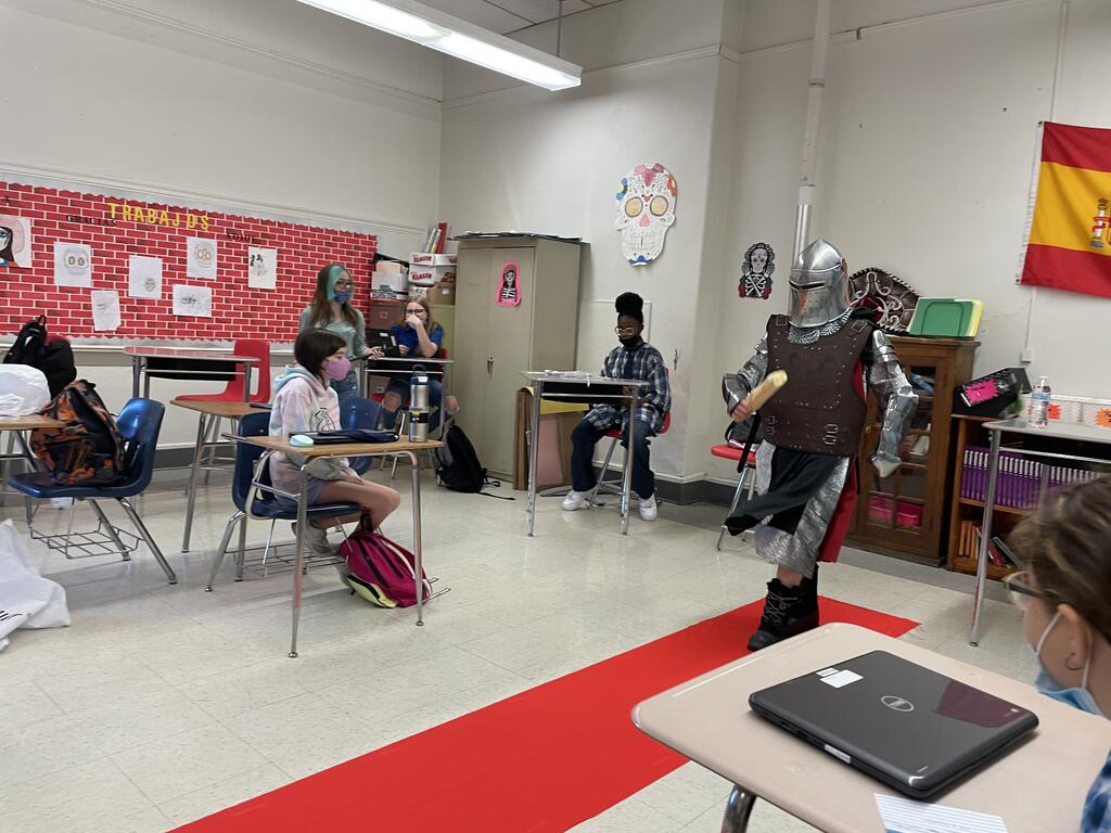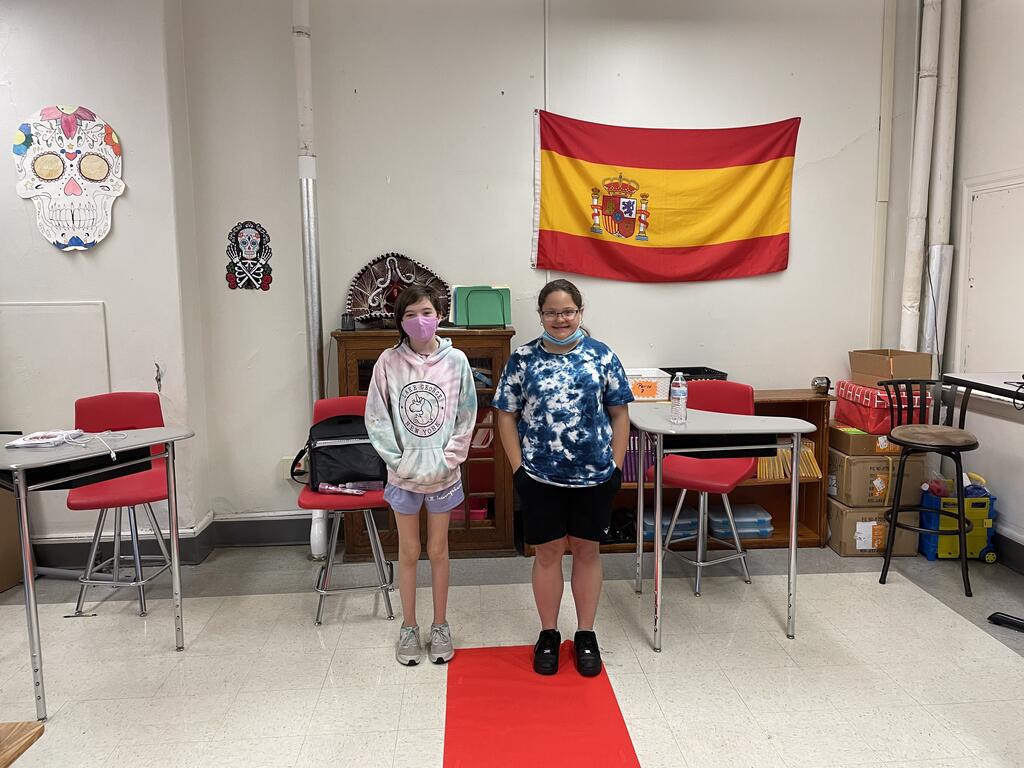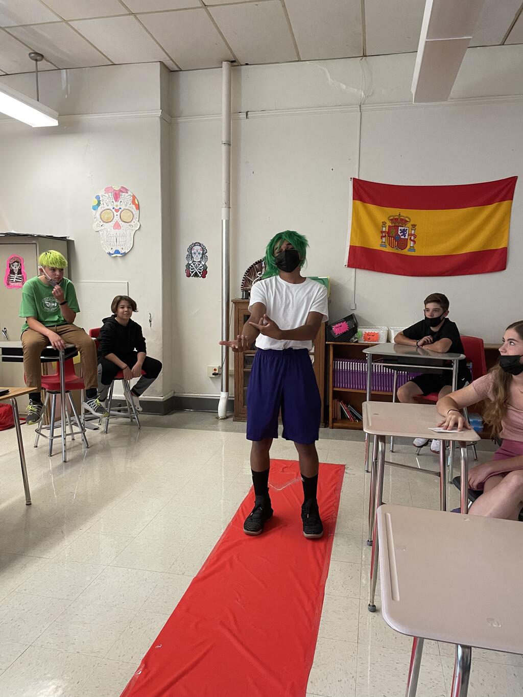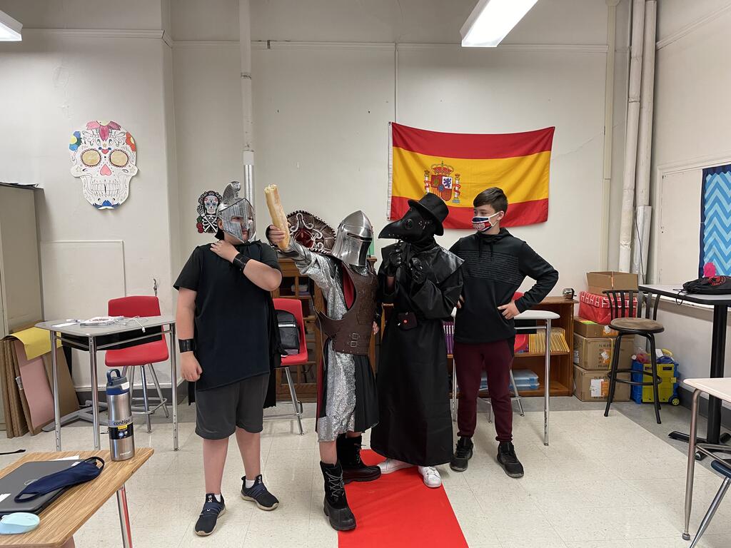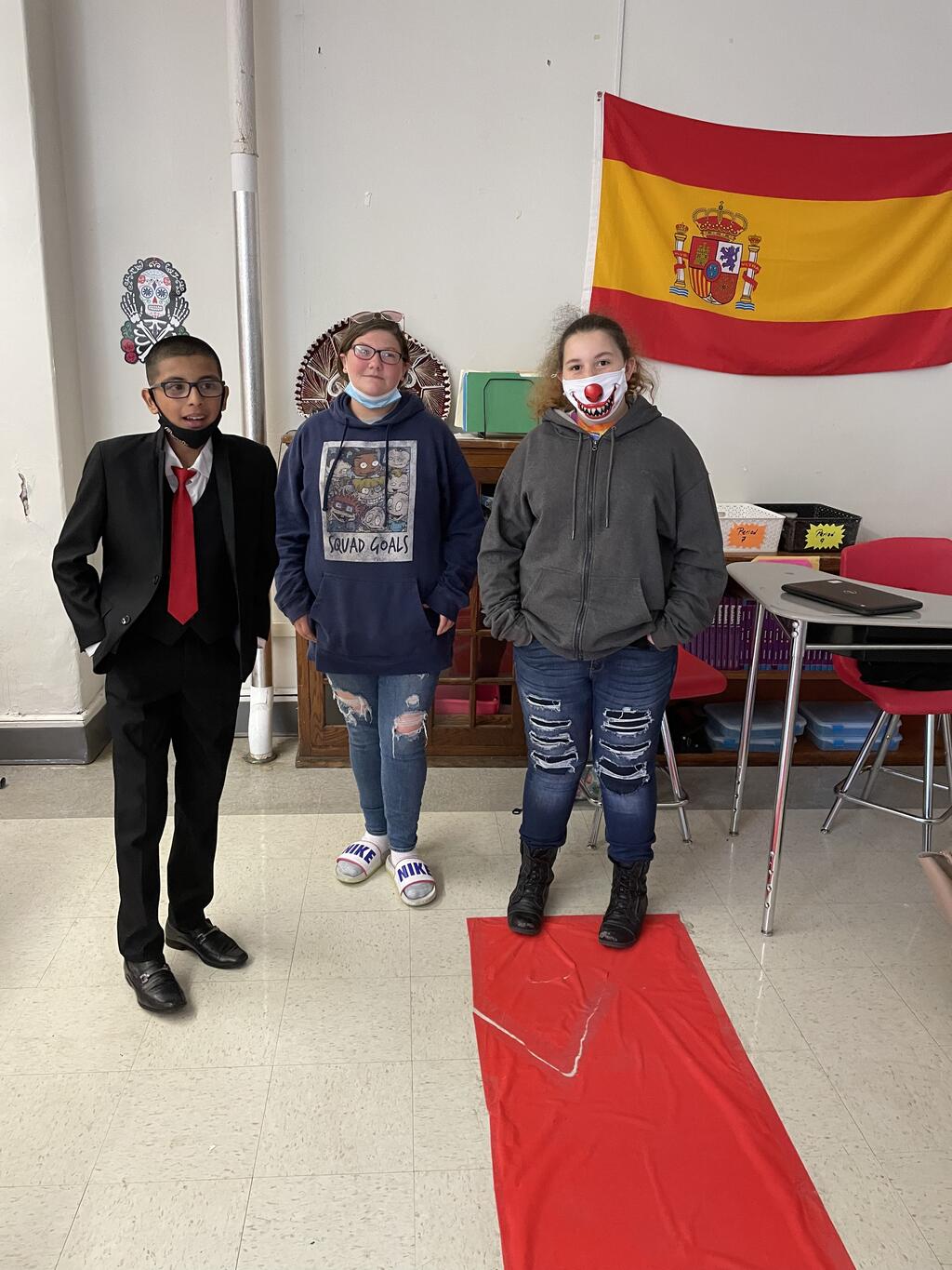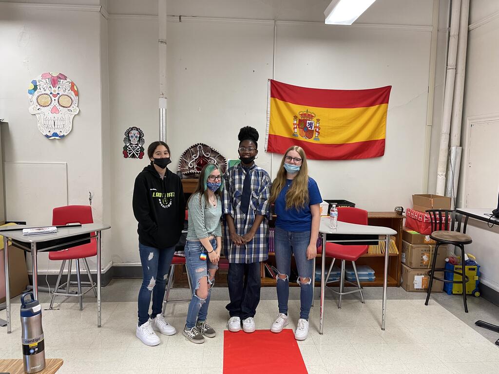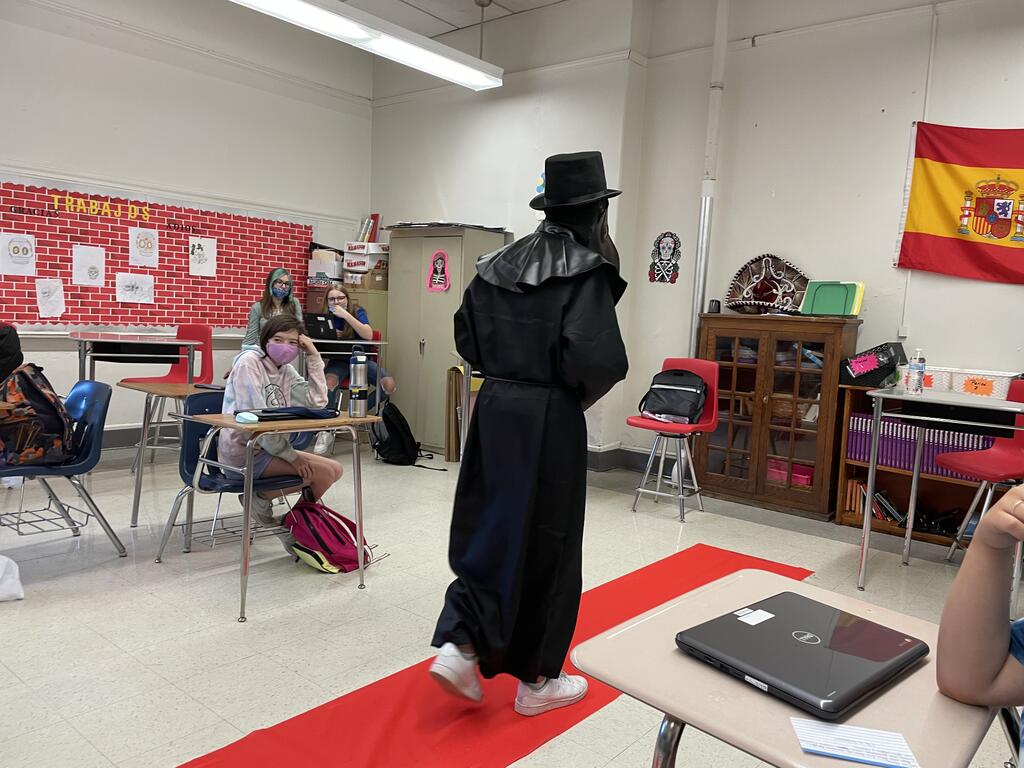 This year's foreign language fashion show sported all of the flair, color and style as all others only wrapped up in a slightly different package. Each class paraded their garments in their own classrooms with high aspirations of offering a video recording of the fanfare or a virtual fashion show experience. Class shown here are Sr. Medina"s Spanish classes. Stay tuned for Madam Abarbanel's French classes!