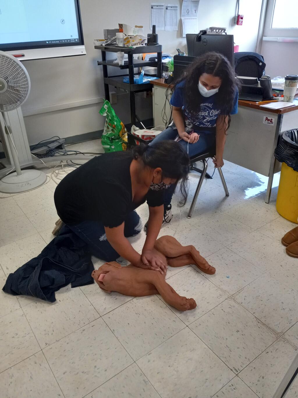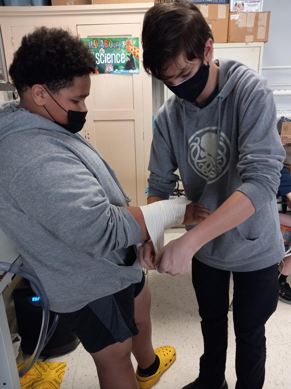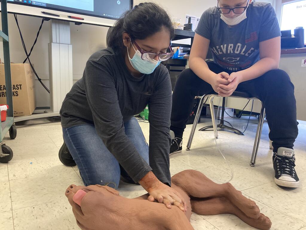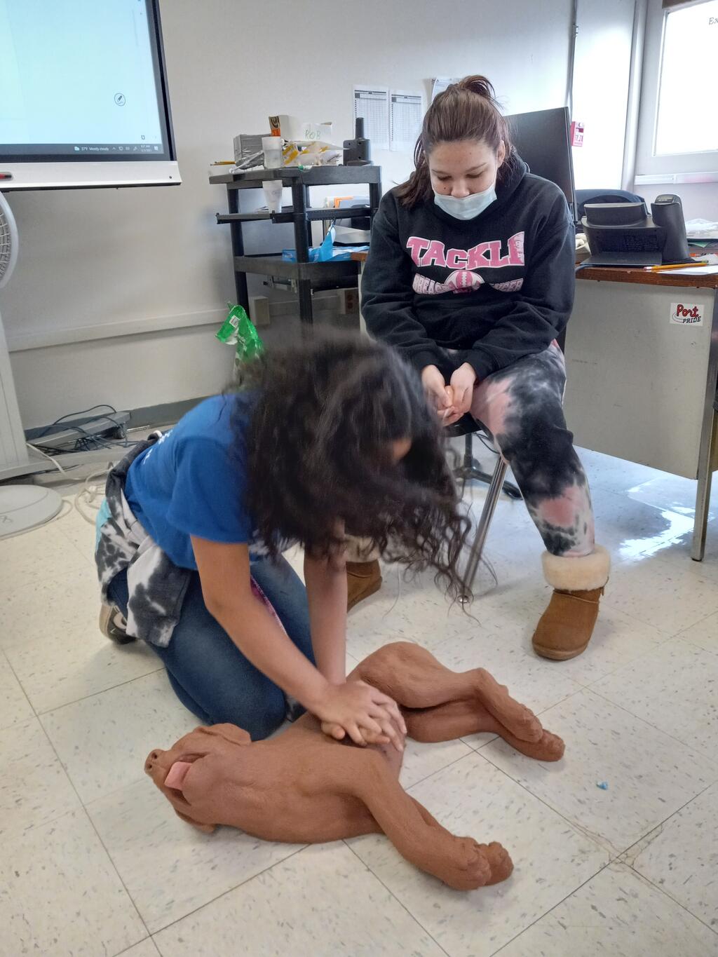 Students in Mrs. Wieboldt’s STEM and Sustainability class recently practiced vet science skills focusing on canines. Students honed skills on dog CPR, clipping nails, and learning to wrap bandages.