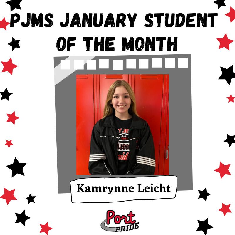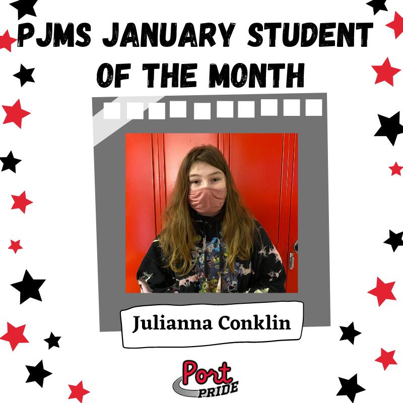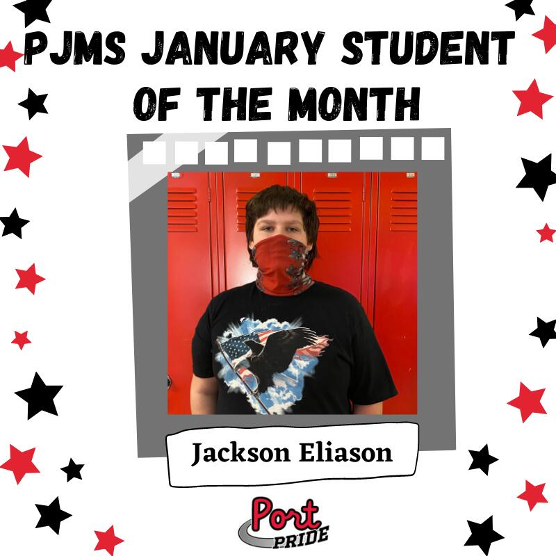 Congratulations to the following PJMS Student of the Month recipients! Keep up the great work.