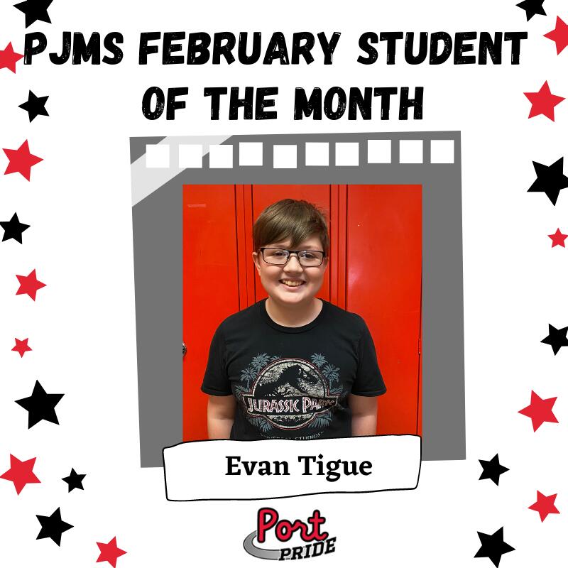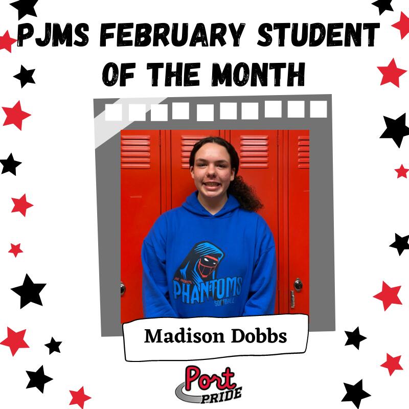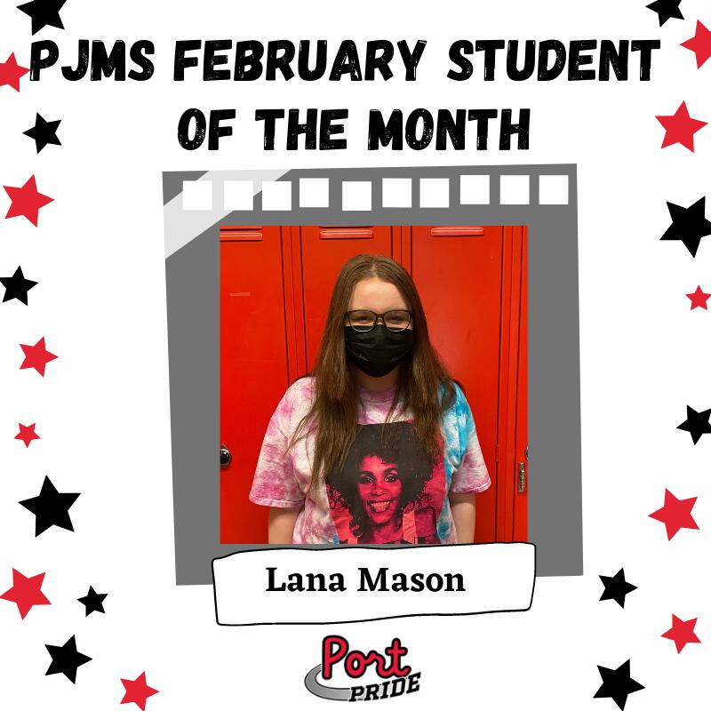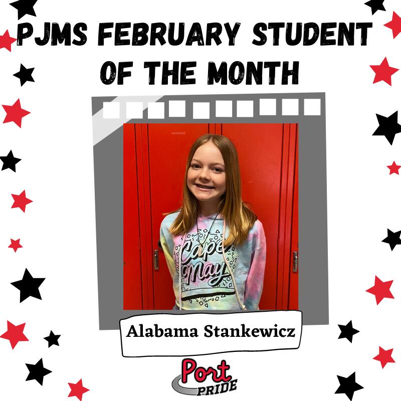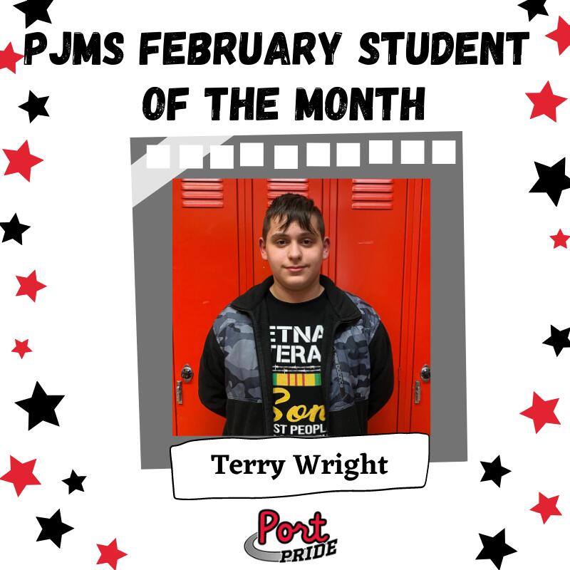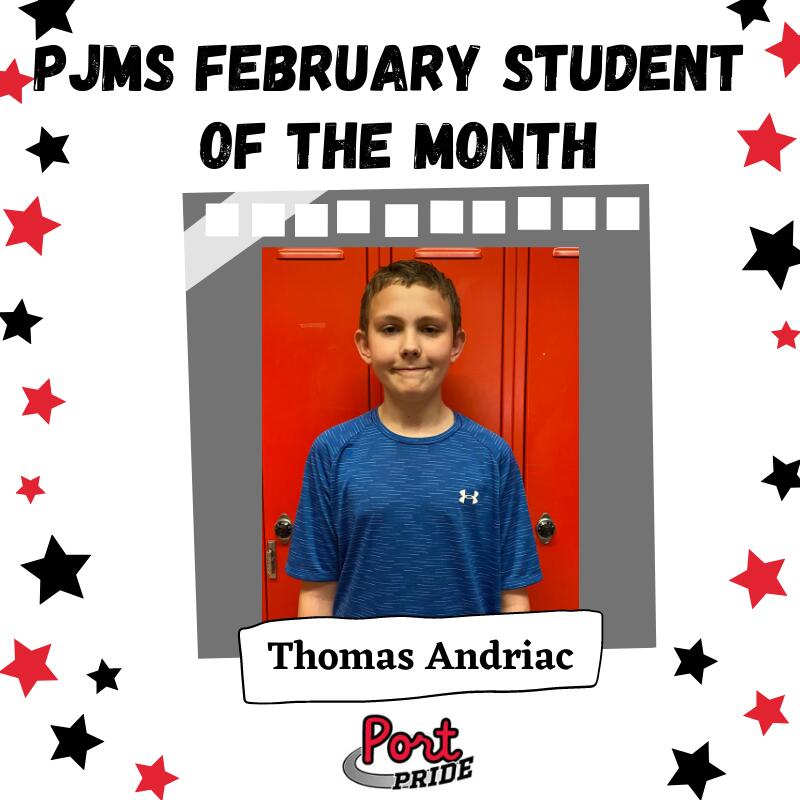 Congratulations to the following PJMS student of the month recipients for the month of February.