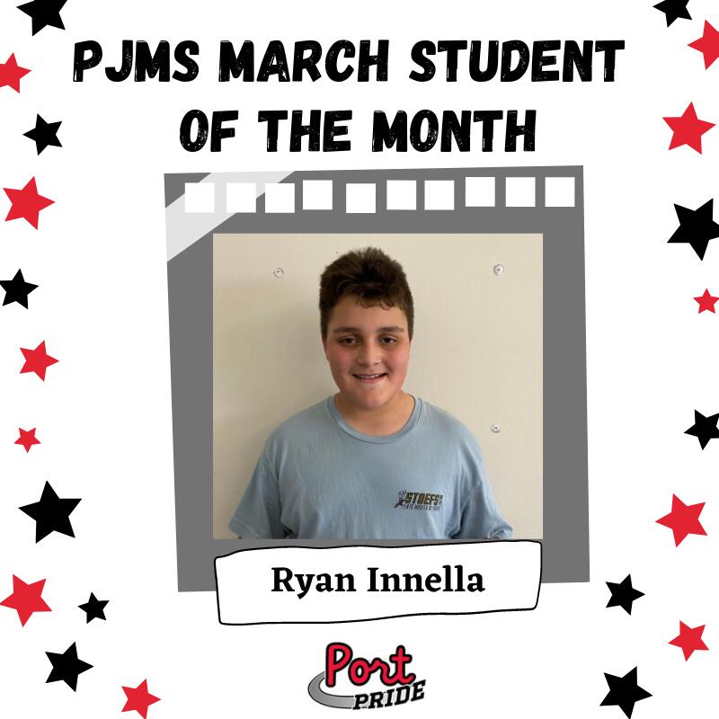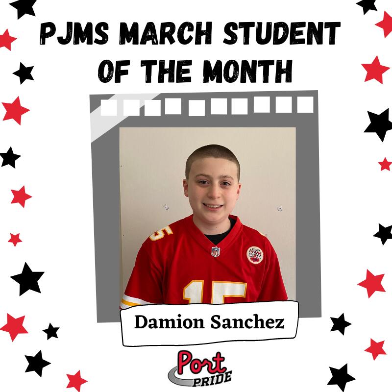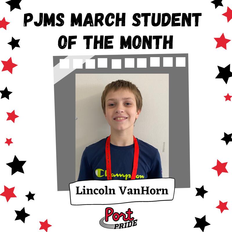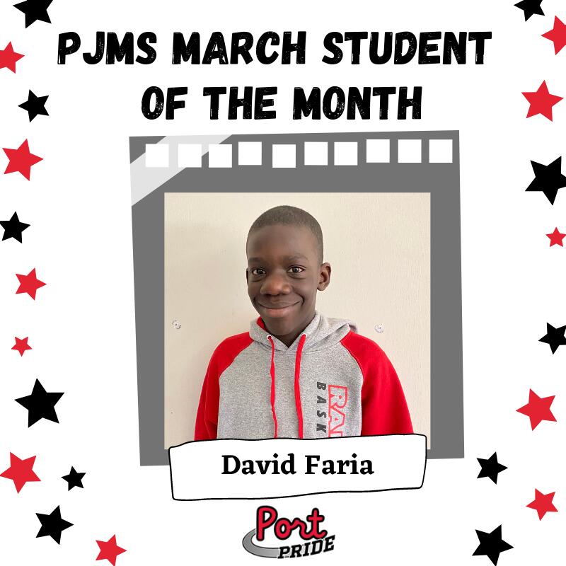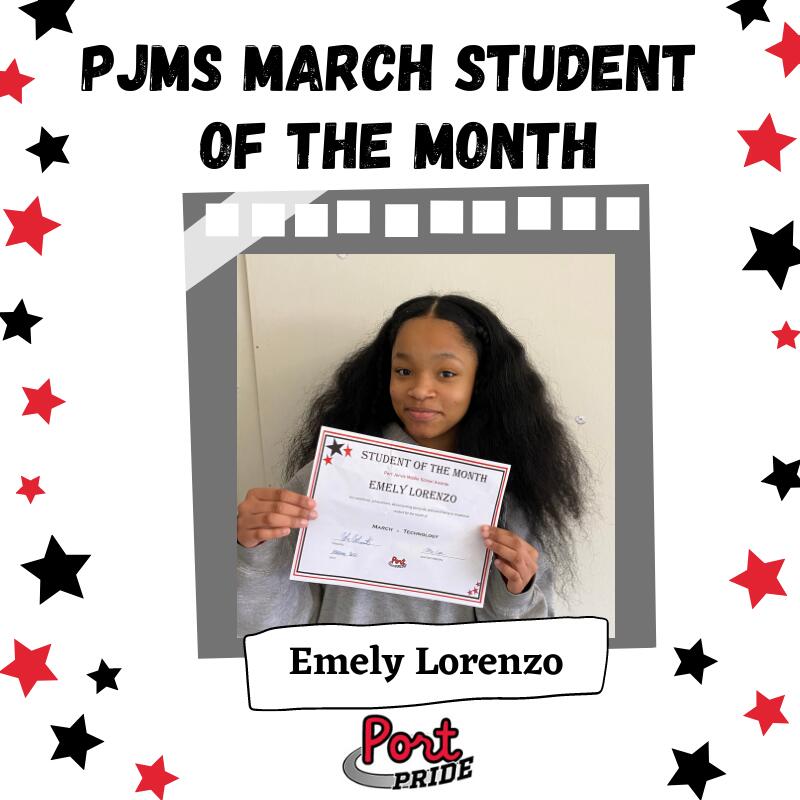 Congratulations to the following PJMS student of the month recipients for the Month of March.
