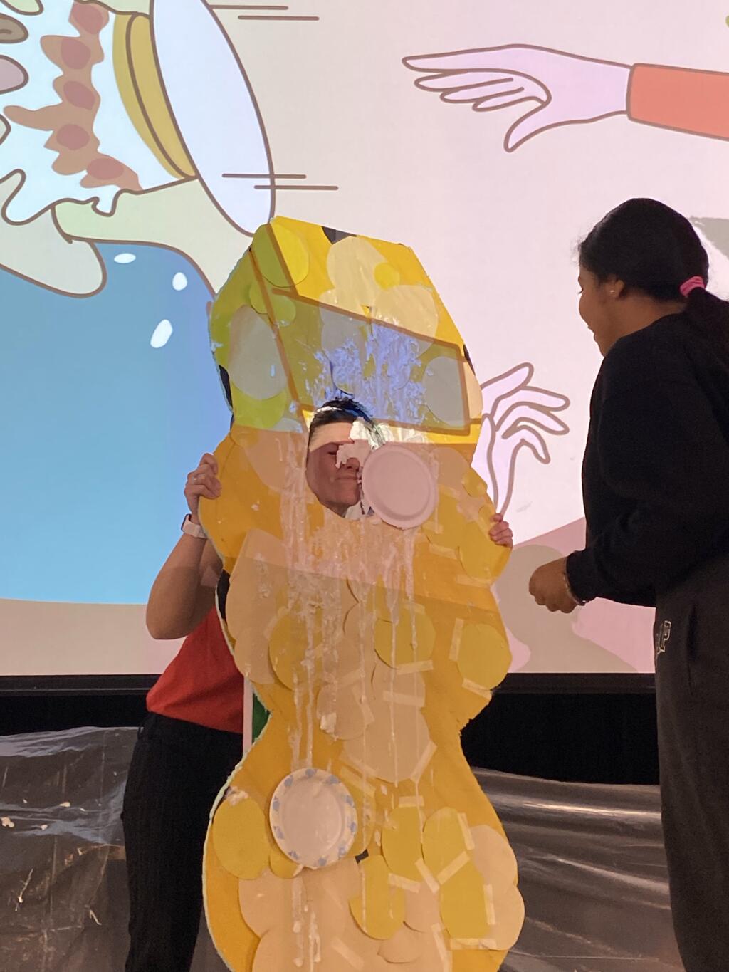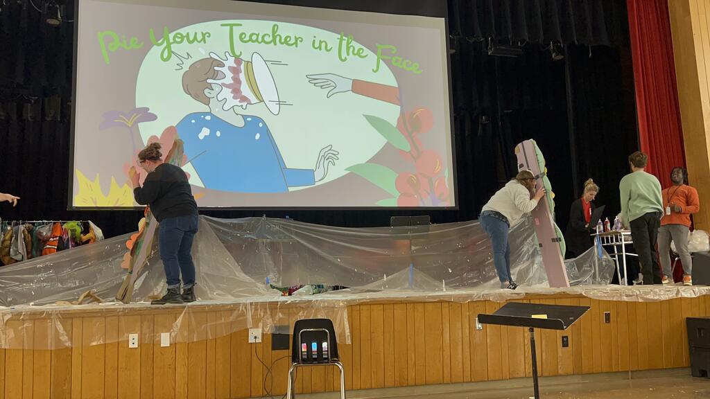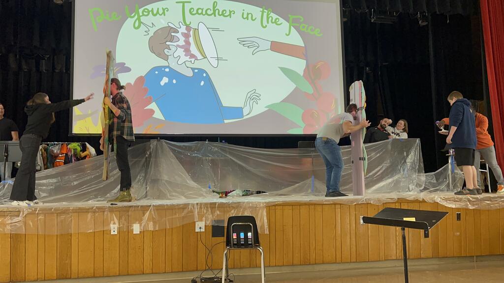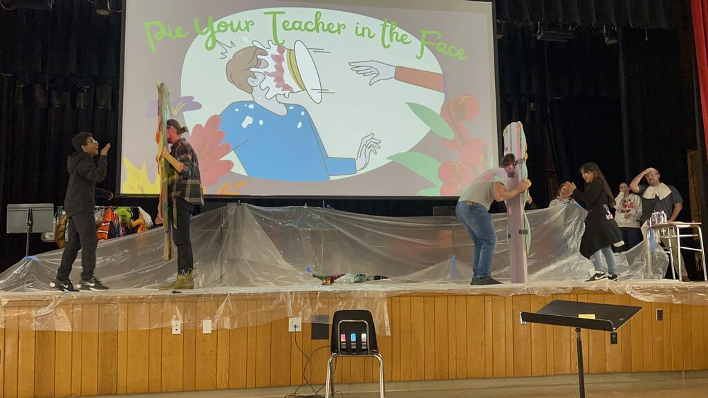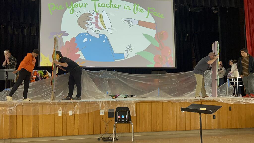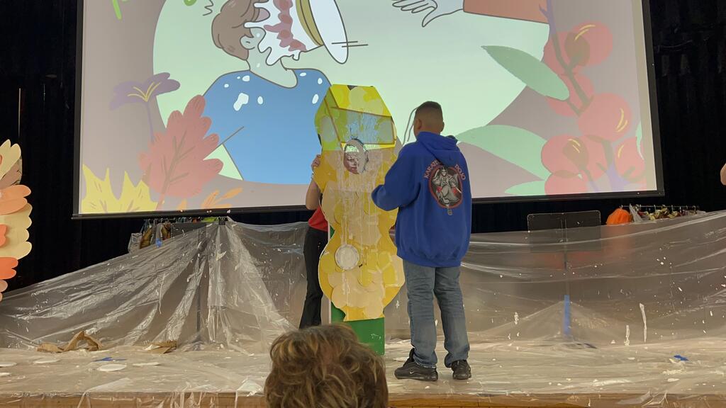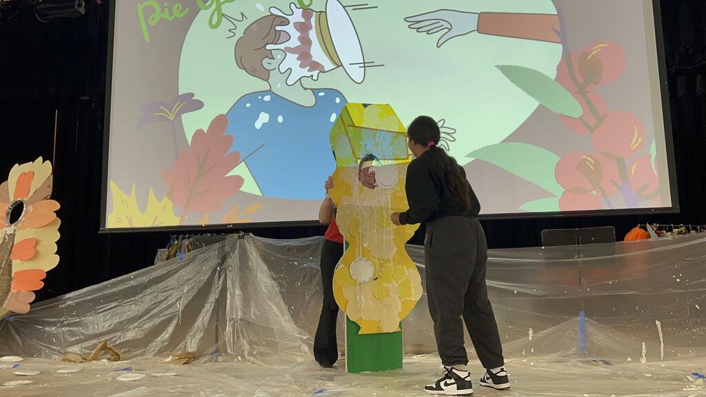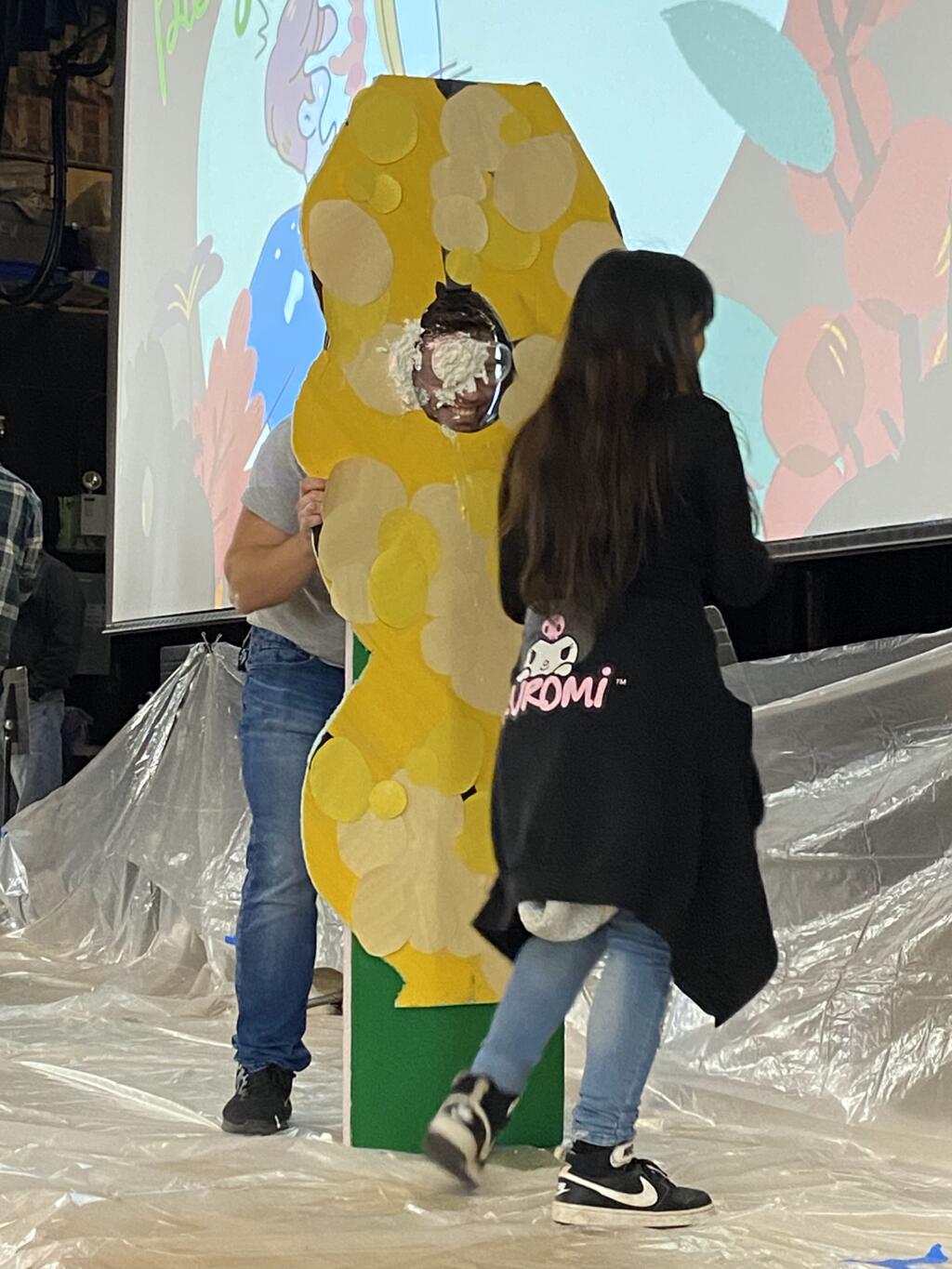 PJMS students earned the opportunity to pie a teacher or principal in the face. Class equity money earned through the Character Education Program could be redeemed for this special opportunity. Thank you to all of the teachers and Mrs. Cook for your participation.
