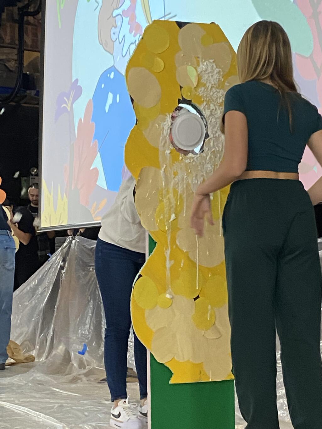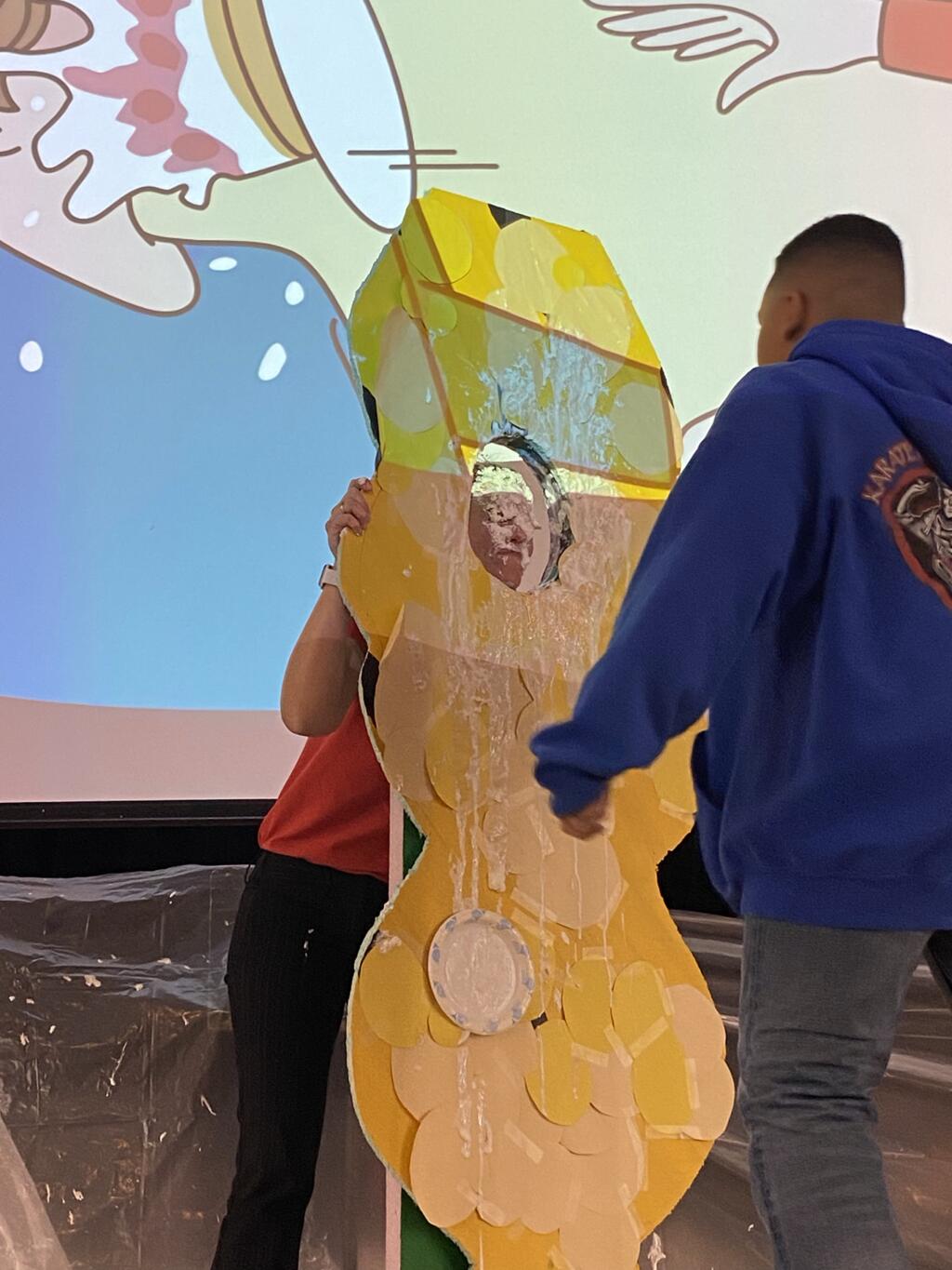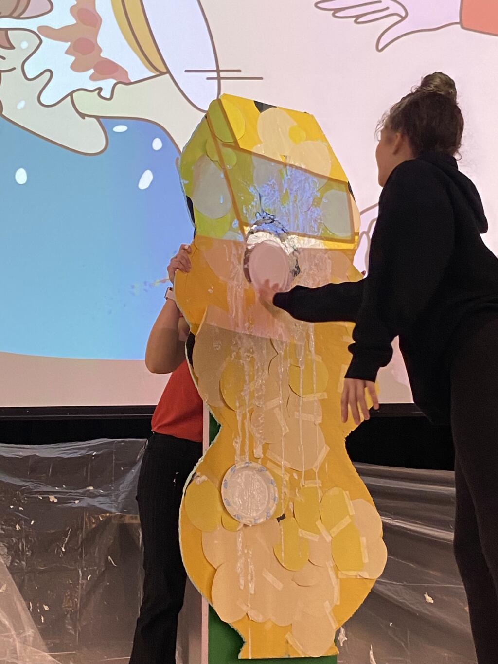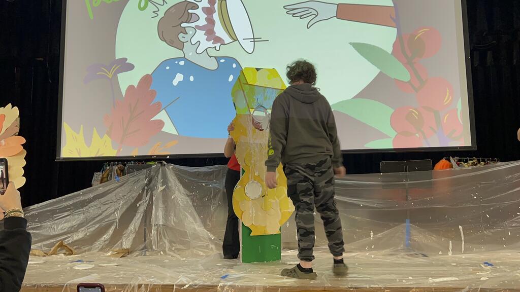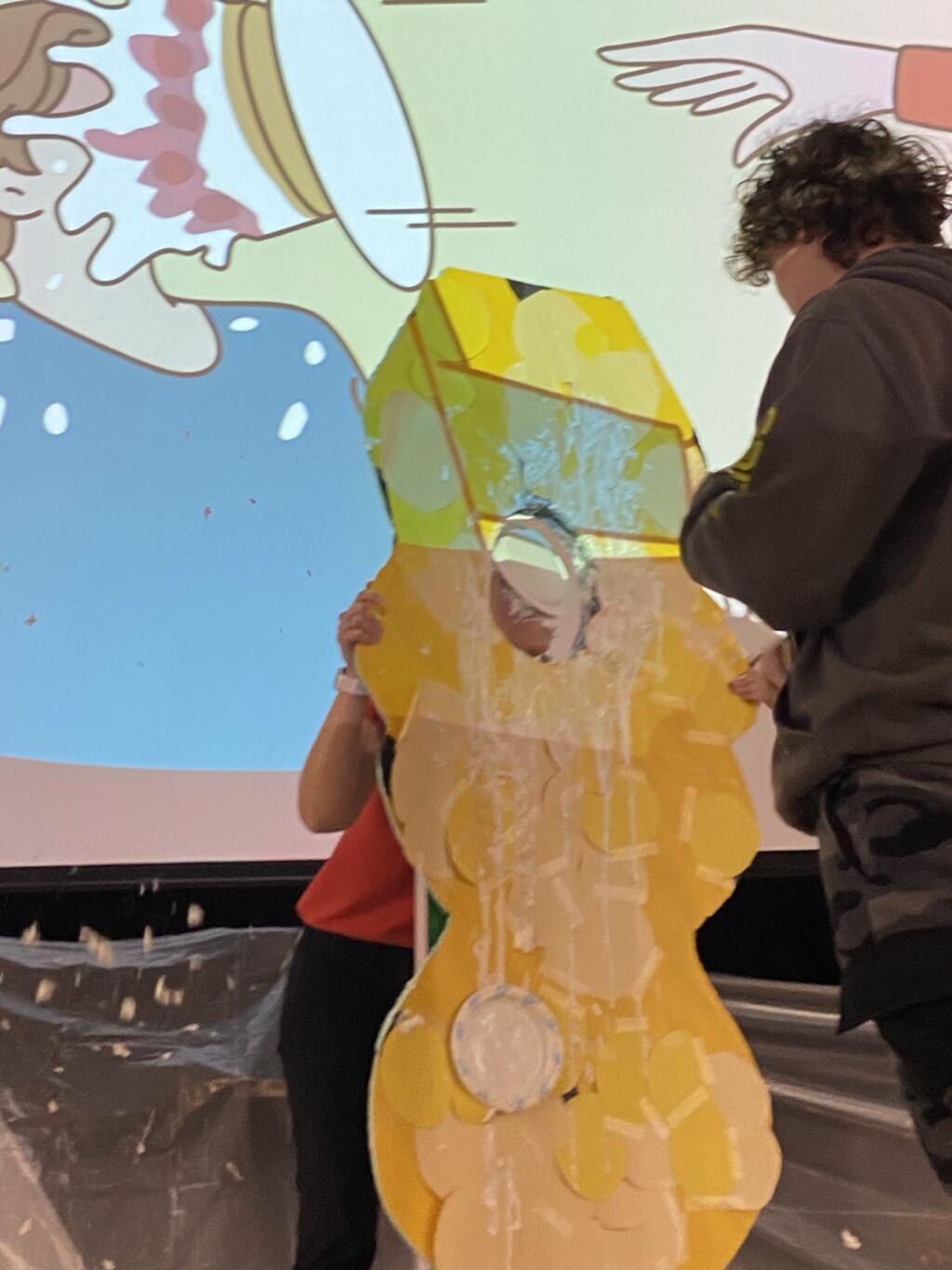 PJMS students earned the opportunity to pie a teacher or principal in the face. Class equity money earned through the Character Education Program could be redeemed for this special opportunity. Thank you to all of the teachers and Mrs. Cook for your participation.