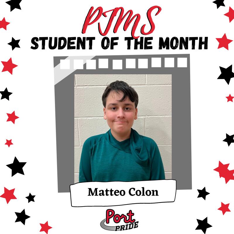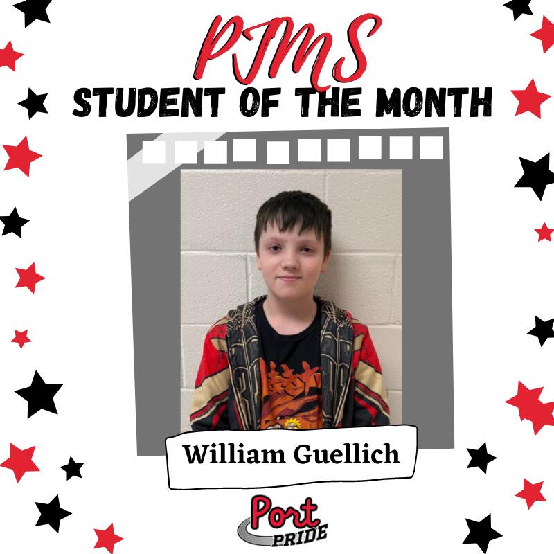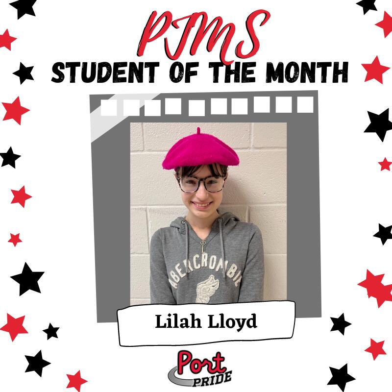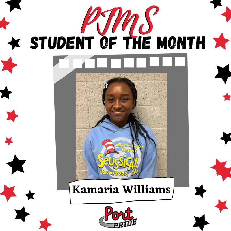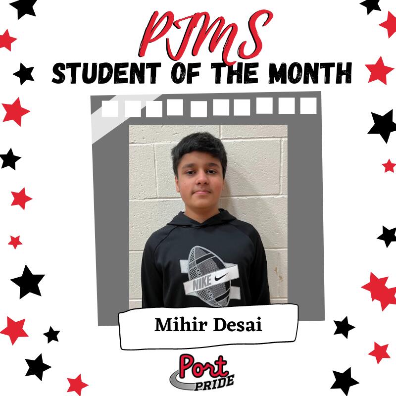 Congratulations to the following PJMS Student of the Month recipients for the month of December!