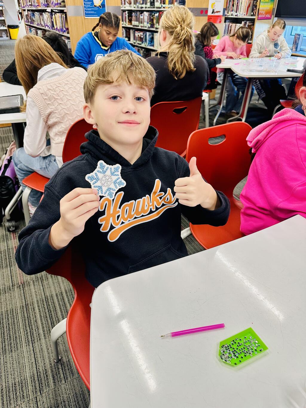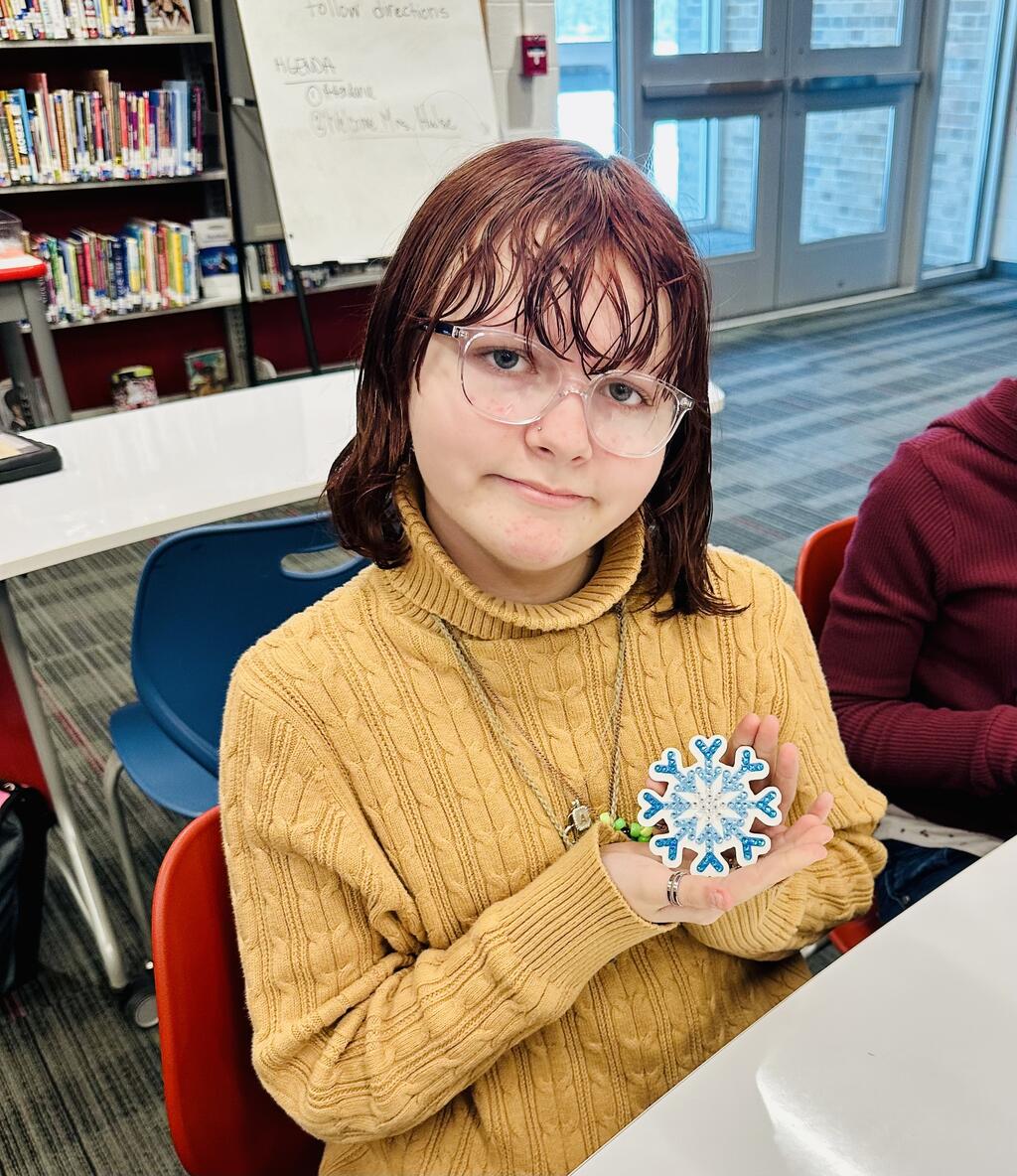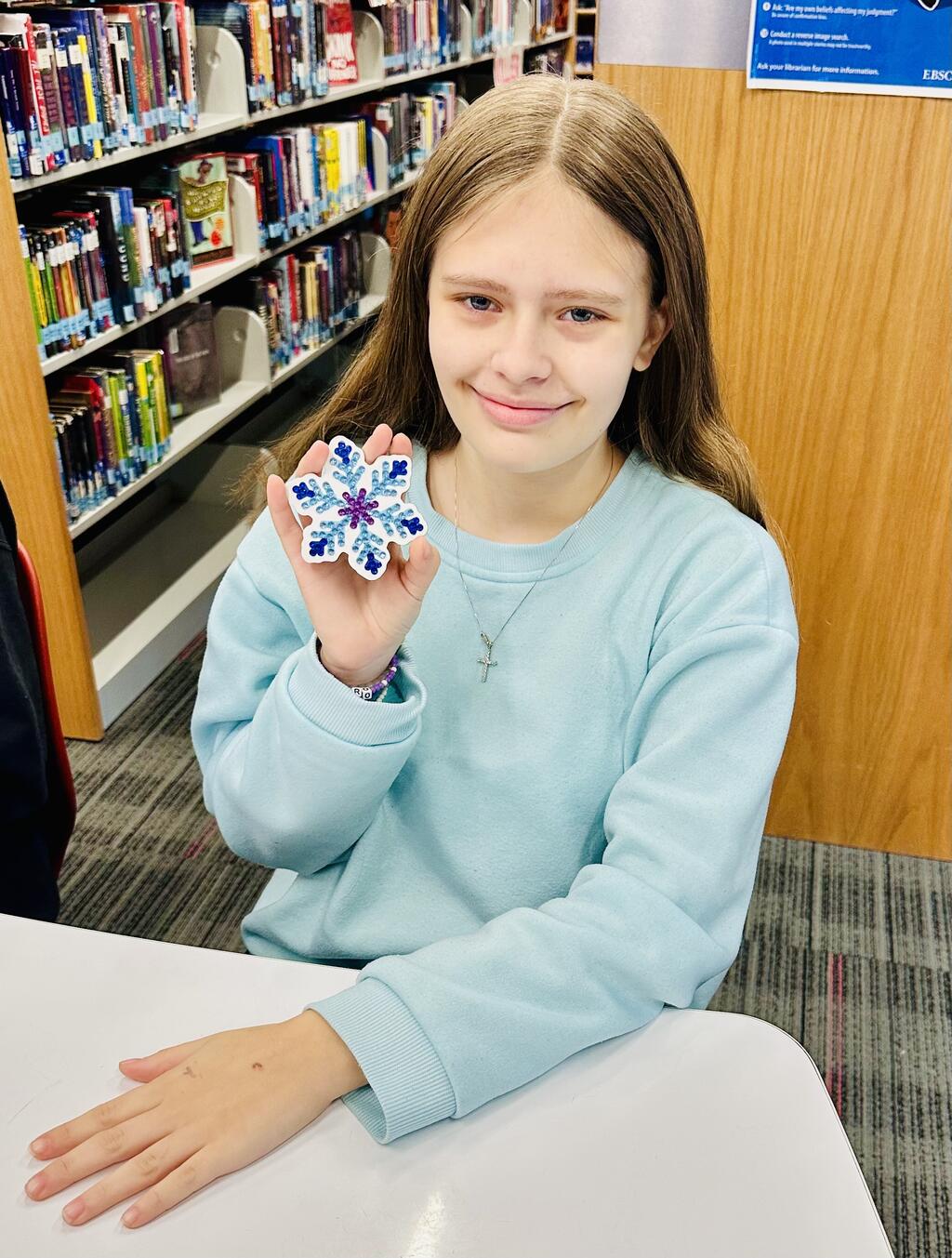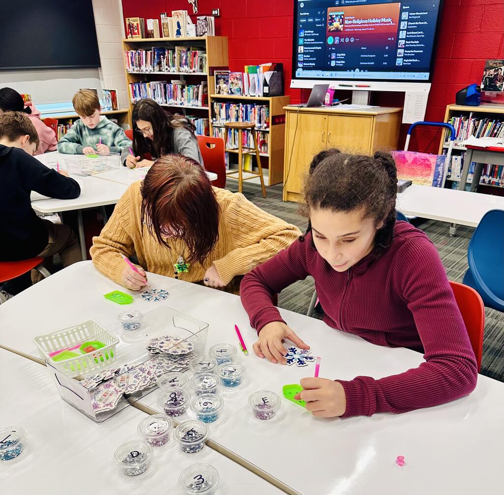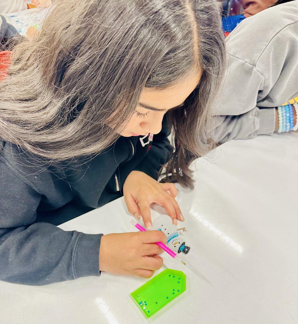 The series ended with a fun activity. The students made winter-themed diamond art magnets, keychains, and ornaments. ADAC and Mrs. Hulse shared with the students that, like Paul in the video, creativity releases natural dopamine. The students took their creation home with them. The main thing ADAC and Mrs. Hulse noticed was that ALL students were completely engaged right from the video until it was time to go. They sat together, had conversations, and even complimented each other on their work.
