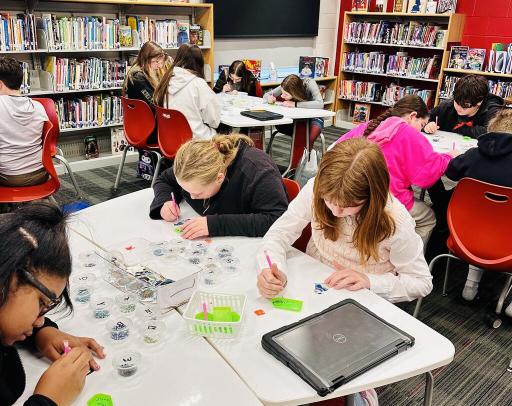 The second of five scheduled PJMS Library Series with ADAC and Mrs. Hulse was held on 12/8 and 12/9, with Mrs. Roach being the hostess with the mostest! They had four 6th-grade classes over the two days and saw about 90 kids.