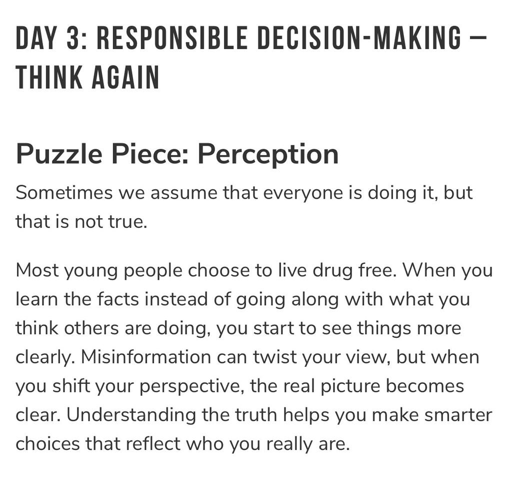 ADAC and Mrs. Hulse focused on the positives and what students could do to be "naturally high." They have a five-part program that they are implementing. This is the website for your reference.