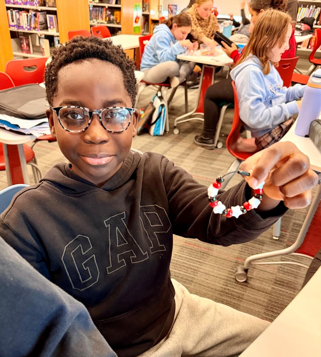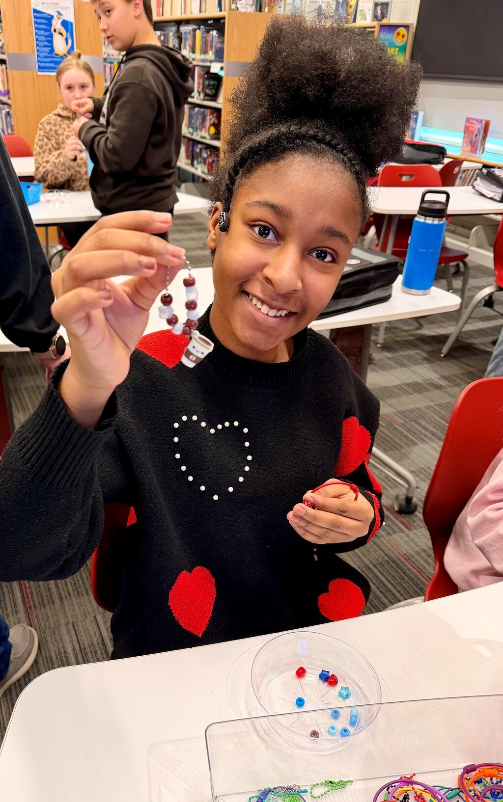 For part #3, the focus was on responsible decision-making, thinking again, and perception. This part ended with the fun activity of making jewelry with beads and charms. ADAC and Mrs. Hulse shared with the students that, like Queen in the video, doing something healthy that you enjoy releases natural dopamine. The students took their creations home. They had time to make several pieces, and we overheard them saying they were making jewelry for friends and family, too! Their creativity was amazing, with students making all kinds of creations to hang from water bottles and backpacks! The main thing ADAC and Mrs. Hulse noticed was that ALL the students were completely engaged right from the video until it was time to go. They sat together, had conversations, and even complimented each other on their work.